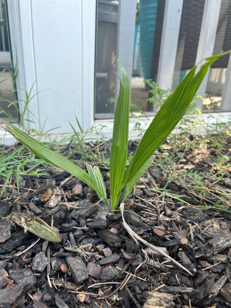 Just a handful of local pics from yesterday. Nice robusta at the San Antonio Zoo: A little coconut still hanging in there in December, also at the zoo. I liked this pair of S. mexicana on the river at The Pearl. I thought the people in the shot help demonstrate the scale. At my own house this morning, I caught a tenant living in my Washingtonia. This Washingtonia continues to grow at a rapid pace. Here it was when planted late in May of 2024: In October 2024: May 2025: And today:1 point