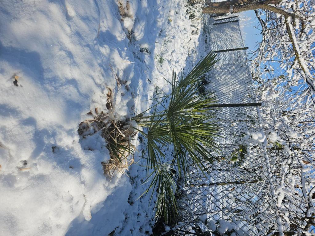 Good Morning! Yesterday, it snowed, the whole day!!!! And it went to -6C at night, here is a pic of my european fan palm in the ground afer -6C: -