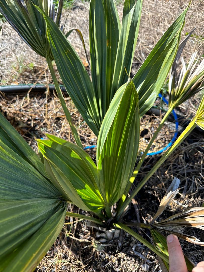 Thought id share my pics since i discovered this thread. There are 3 Lisa planted together as they germinated in a bucket of recycle dirt and developed together. I didn’t want to disturb or separate once they revealed their traits to me. It was a 25gal container about 1/2 full of dirt and i slid the entire mass into a sugar sand location on my property that gets full sun 6-8 hours a day but late afternoon summer shade. Supplemental irrigation all year round to carry them through our hot/dry springtimes the last few years. These do not hold more than 3-4 fronds each. I also believe their mutations have compromised the palm in nutrient uptake . I am very good with fertilization and diagnosis of deficiencies. I don't think fungus is an issue or ever has been , with mine anyway. I DO have a lot more leaf skelatonizers than any other variety of sabal. I hope that the canopy continues to grow and support more fronds as maturity progresses. These have been in the ground for about 3 years, pics not in any age order just a collection over time.