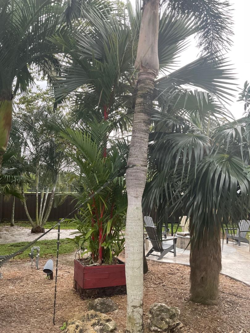 I’d agree Maybe Majesty or Royal Palm. Tip get some drip line irrigation for them Nd drown them in mulch but make sure to put some type of wrapping around the bottom part of the trunk that would be covered by mulch to prevent rot Dry winds are not Majesties friends though so be careful. -