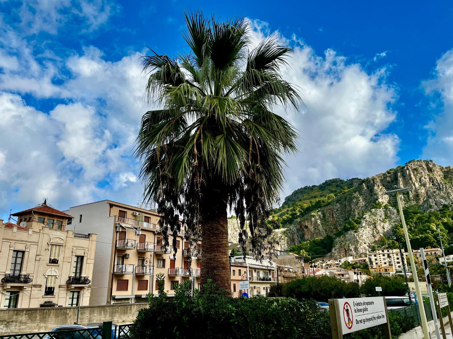 Some bonus shots from elsewhere within Sicily. First up this Washingtonia filifera with a monster stocky trunk. Lovely backdrop too. Cefalù. -