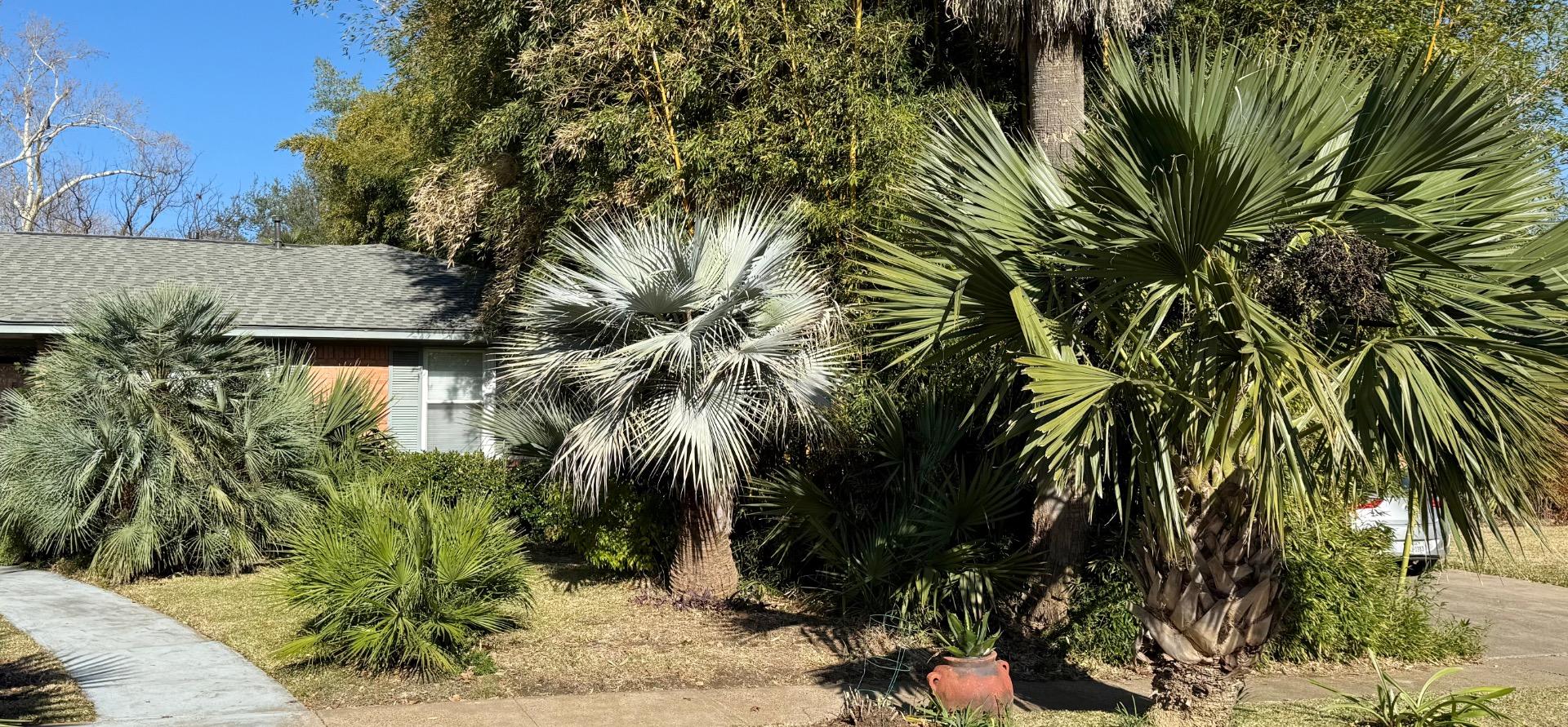 In September 2018, about 7.5 years ago I planted these palm hybrids from Patric S. Here they are in February 2026 Dallas zone 8a. Both survived 3°F with only a tarp over them. The palm by the AC is the trigeneric: butia X Jubea X syagrus. The palm by Miss Holly is ( Butia x Jubea) X Jubea.