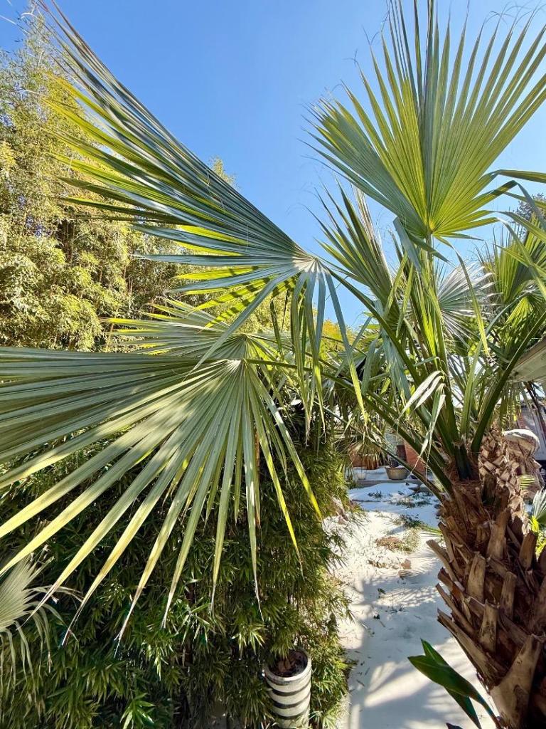 Hey! I got a mexican fan palm just today, it's around 180cm tall, eith pot around 2m. I'm planning to plant it in ground on south wall in well draining cacti soil mixed with our native soil.