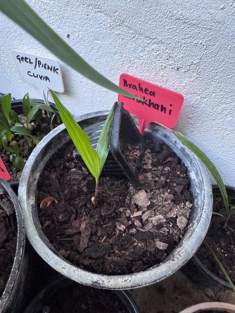 I also like the growing of filifera seedlings in a community pot or 4"pot with "cactus" soil. I am joking...... Maybe this 5.5 month old pure filifera seedling grown in "neutral soil" deep liner, would be "different " in a 4" pot.