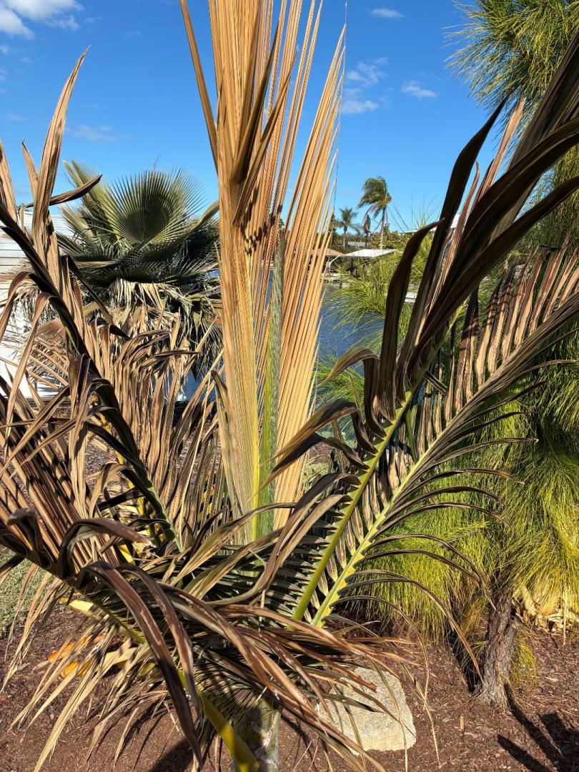 Thanks, there's a bit more green than the pic shows, particularly on the crownshafts and the rachis. But it's very disheartening to step outside and see so much brown. I applied hydrogen peroxide on everything that I could reach. The buccaneer bubbled a little bit but most didn't. Most spears looked good. I'm cautiously optimistic. The only real issue I'm seeing is with the macrocarpas since they only give me a couple fronds a year. The buccaneer has bronzed a fair bit over the last few days so I'm not really sure. That's also a really slow grower so this could stunt growth pretty hard. The pembanas all look like they'll push through. Olivformis doesn't look as good as the pembanas but they are pretty quick growing and the spears still look good. The coconut looks to have stabilized. Still hanging on to all the green. I haven't marked the spears yet but will do later this week and will start tracking any growth or lack thereof. Honestly I'm very pleasantly surprised about the coconut not being totally fried. This event was brutal with the winds and the cold, and I think there's a legit chance it'll pull through. -