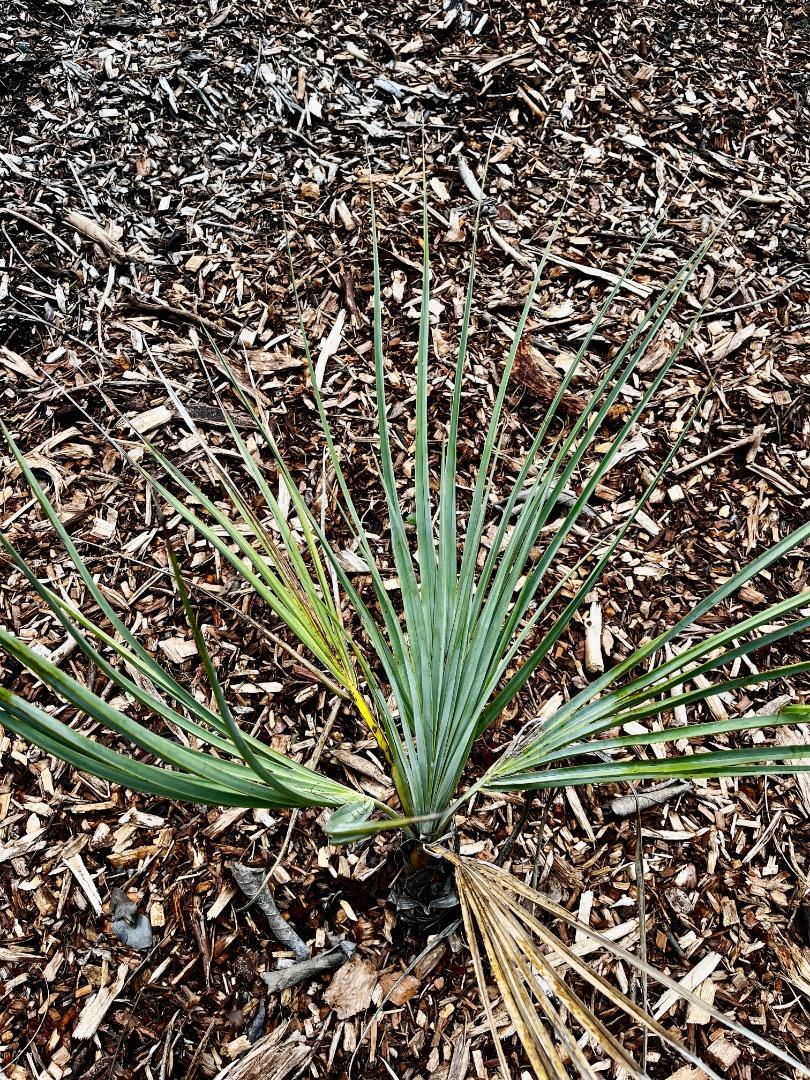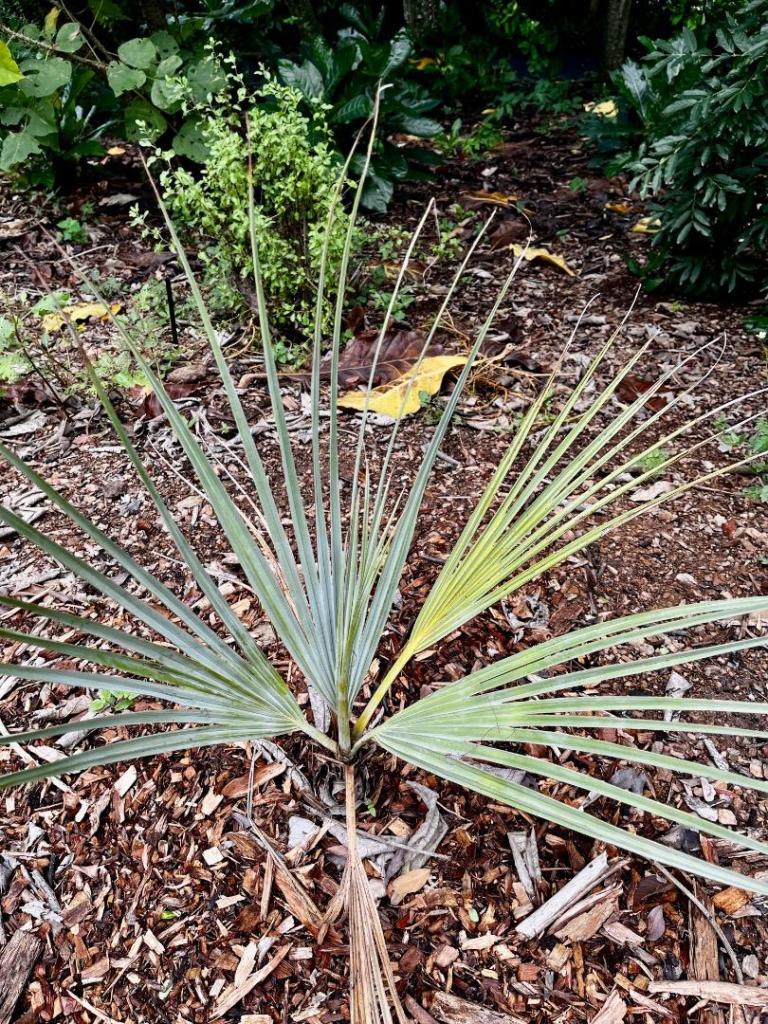 Spring is entering gradually and new growth starts appearing on Bismarckia and Nannorrhops. Which one is more blue in your opinion?