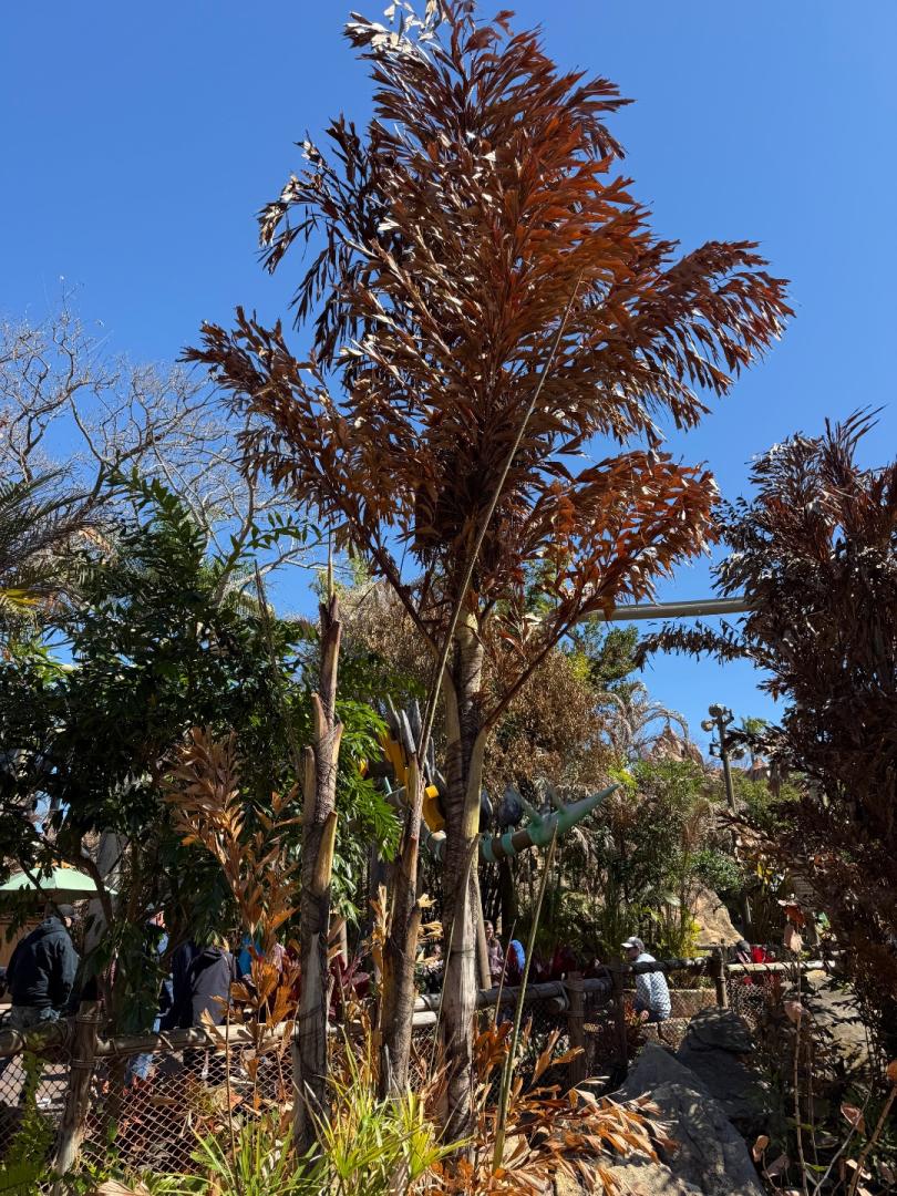 The damage on some palms and cycads seems wildly inconsistent. It's really strange: Dioon Merolae has 8 or 9 totally torched fronds, and one untouched solid green one! Zamia Vasquezii on the N side of an Alfredii is 100% burnt to a crisp, and an identical one 6 feet away looks nearly perfect. More normal is the behavior of some Encephalartos Ferox in the open (exposed to wind) 100% torched, others with some windbreak are lightly damaged. I did pull one spear from a small B. Alfredii today. It is about 3 feet tall, so it is still super skinny near the bud. I haven't tried pulling on many spears yet. I am sure of 100% mortality on all Burretiokentia and Cyphophoenix species, along with several Dypsis/Chysalidocarpus Lanceolata and Pembana. The Lutescens will probably regrow from the roots. A bunch of others probably have bud death and I just won't know for a couple of months. Some stuff I am just going to "edit" out now instead of trying to fix them. -