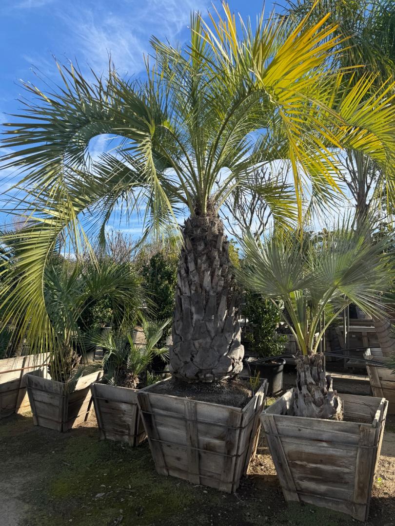 Dale, thanks for the kind comments. This particular plant is well over 10 years old, a one gallon plant via Floribunda. I planted it on a hillside and like many plants, it just wasn’t getting enough water for many years. These plants had a tendency to increase in diameter a little bit without going vertical very much. About a year and a half ago I finally got the drip irrigation and fertilizer regimen all dialed in and most everything on the hillside started looking much better, super green, with really developed root systems. Plus, there’s just a lot of partial canopy going on in the backyard now. This seems to always help from having plants bleach out too much, especially in our low humidity environment. You mentioned the brown crown shaft, I’ve noticed that on mine as well!