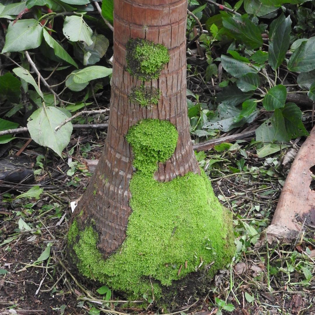 Mine came from the same FB batch as Kim's. It went into the ground in March 2019 from a 1 gallon pot. After seven years, it is now about 15 ft (4 m) tall overall with about 4 ft of bare trunk. The color of the trunk is a dull red-orange. Totally carefree. I had never noticed any spines on the crownshaft, but when I looked closely today, I do see very widely separated short spines about a half inch (1 cm) long. Much more conspicuous are the white hairs on the leaflets. I have not noticed these on any other palm species growing in the garden. Could this be a reliable diagnostic character in addition to the coloration? Mine has developed a swollen base. -