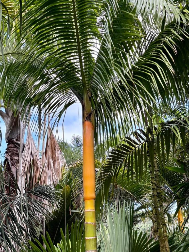 One of my Washingtonias, was 3' tall in Oct 2023, now 5' with a massive trunk You can also see the Seabreeze bamboo behind it is doing great -