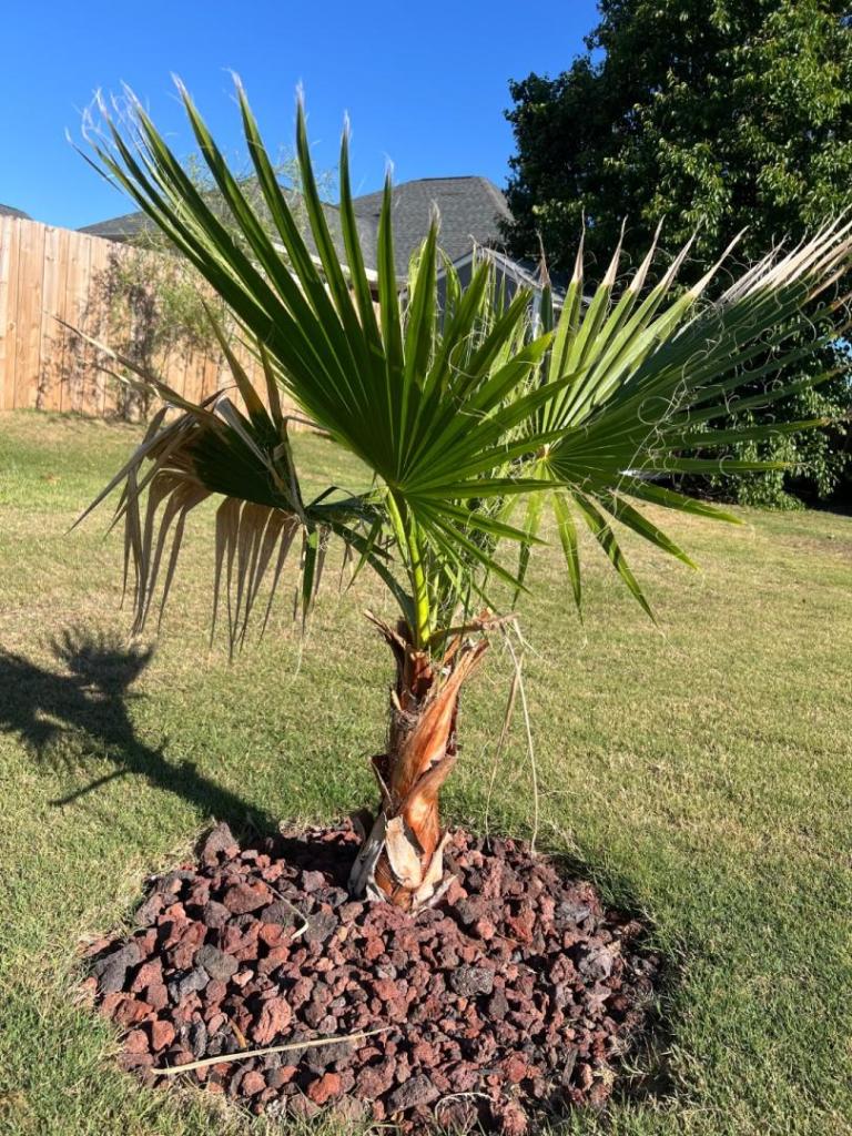The first two of them ended up surviving. Freeze damage combined with sooty mold and rot took out the other two. The first one bounced back super fast, it couldn’t wait to burst out new fronds. It was still pushing out growth throughout the winter, making big fronds too. The second one is putting out small sized fronds and is struggling a bit with ants on it that I have been trying to get rid of, same pest problem I’ve been having with the other palms also. Sprayed the thing with fungicide also. I’ve been using ant traps nearby too. My two largest windmill palms also got sooty mold and rot problems, both had spear pulls and I poured peroxide in the holes recently and they still fizzed. It looks like this biggest Washingtonia has some strong genes or is lucky because it is the only palm I planted last year that is very healthy at this point. - Today