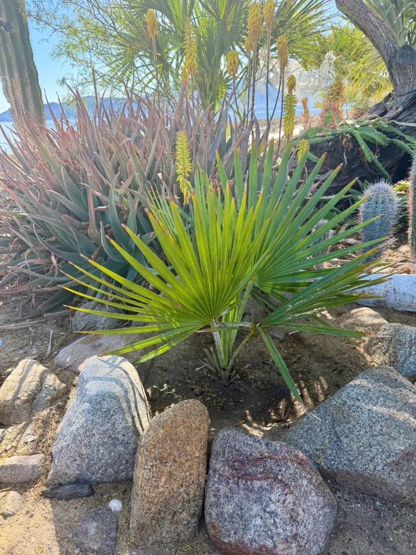I just got back from a brief road trip to Bahia de Los Angeles to see the northernmost red mangroves on an island in the Gulf of California! It is a tiny coastal village in the middle of nowhere with no cell service and only satellite internet. Nevertheless, I stumbled upon some incredibly rare palms in a random garden! Anyone know any information about this garden? I tried knocking on the doors nearby but nobody was home, but there was a house pipe with wet ground beneath it so it looks like someone is tending to these palms. Click here if you want to see ALL the photos from the road trip First is the trip's purpose: the colony of red mangroves with the second pic being the particular northernmost mangrove in the colony. I'm guessing palms are Medemia argun, Bismarckia nobilis, Copernicia baileyana, Hyphaene coriacea, Cocos nucifera (only one in the village), Sabal riverside, Brahea armata (native), and Chamaerops humilis var. cerifera.- 1 reply