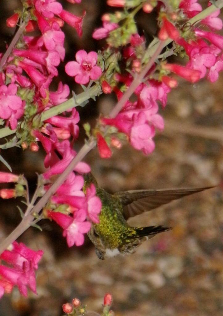 Warm evenings = more visits from the Sphinx ( Hyles sp ) Missed the chance to grab it but, while getting shots of this moth roaming the bigger group of Penstemon, one of our neighborhood Anna's Hummingbirds swooped in and decided the Penstemon were his and his alone. Kind of funny watching the hummingbird chirp at the moth while trying to drive it off before succeeding in his mission. Said, male Anna's Hummingbird on subsequent visits after his argument with the Sphinx.. Hirsute Paradise Jumping Spider, Habronattus hirsutus, one of two species that belong to the species complex H. tranquillus. Many species within this sub family of Jumping Spiders belong to higher complexes. They are also among some of the most colorful of the New World Jumping Spiders as well. As much as people might fear spiders, these are harmless ..and actually won't hesitate to confront ..and consume... the " bad " spiders ...Widows / Recluse species. Compared to most terrestrial invertebrates, Jumping Spiders have exceptional vision capabilities that closely match that of humans and can even clearly detect and discern certain colors and even human movement. Would be interesting to study whether or not they can recognize / easily detect differences between human faces.