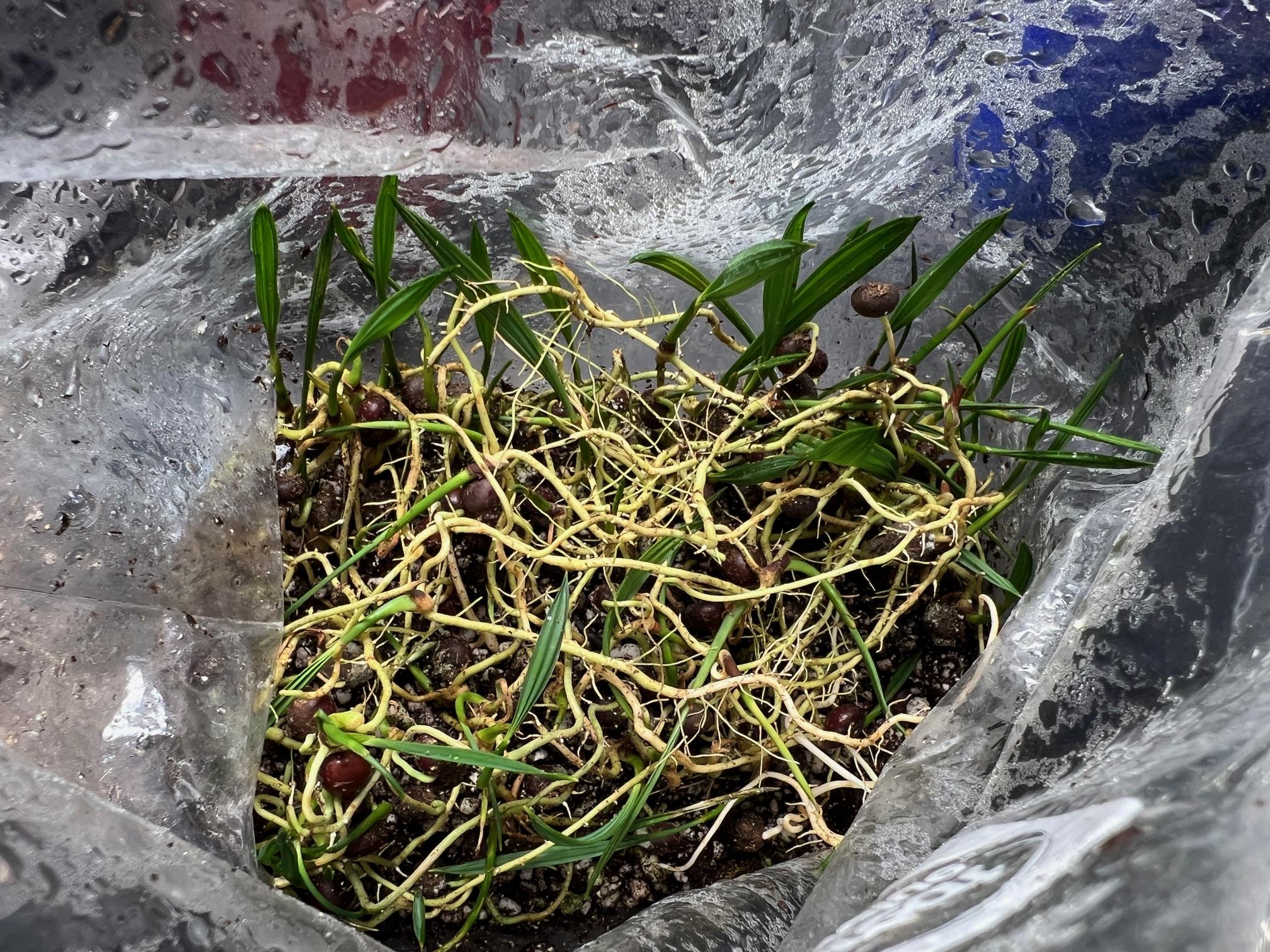 MichaelB 76 Posted July 15 Report 2024 crop seeds from a Sabal palmetto on Ochlockonee Bay, collected in late spring of 2025. The germination rate has been off the charts with my estimation being over 90%.