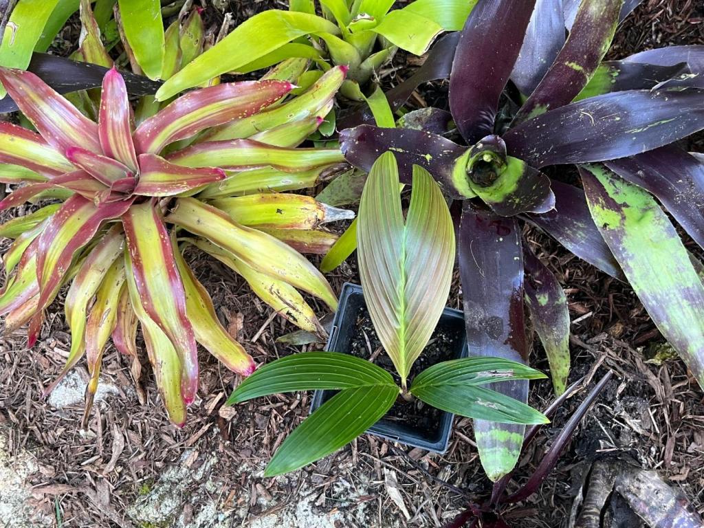 A few new plantings to close out the year, first up is one of my mystery Chrysalidocarpus (possible hybrid) that I grew from seed from my old garden. I now have 2 of these planted out here with hopes that it will look like the parent plant from my previous garden. next up is Hyophorbe India hybrid from Floribunda. last planting is a small Coccothrinax Crinita:10 points