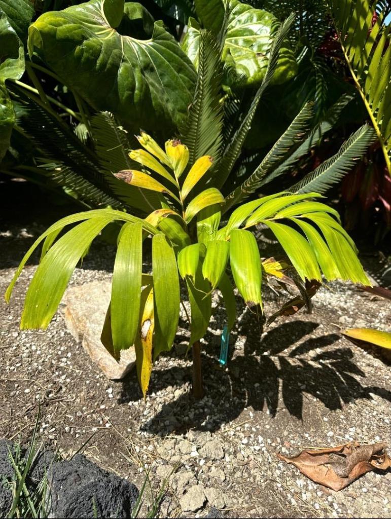 Been awhile since a thread for this genus of rather elegant palms from western Pacific islands. Feel free to post any images and observations you’ve experienced. I’ve got three species and five individuals growing in the garden. C. samoense is by far the more robust and for this reason, planted in the open space behind the property. Digging a hole wasn’t possible because of the shallow soil over almost solid rock, so the potted specimens were just placed on the on the surface after removing the bottom of the plastic pot. Super aggressive roots enabled them to anchor and penetrate fractures in the rock. Here are a few C. samoense photos. Tim22 points