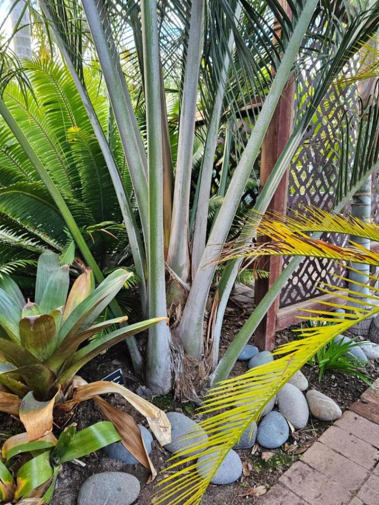 Fall Update #5 - Merry Madagascar and The Split Bed Because of @RiverCityRichard's mention of lemurs, this update continues with some of the Madagascar palms in the same area as the official Chrysalidocarpus corner and then transitions to a bed that was originally designed to mimic the continental divide. The design hasn't worked for the best, so I've been transitioning this bed into what I jokingly called the OnlyFans bed - with a laugh from @Merlyn. The former desert bed now contains only fan palms, hence the play on words. The other side of the bed contains palms and cycads that typically want more moisture to grow optimally. The map shows the locations of the featured beds: Beccariophoenix fenestralis: A palm that was bought on impulse during the pandemic that has turned into a real show-stopper. The lemurs are going to love this after it gets some trunk height. The photo makes it look smaller than it is when you stand next to it. Even though the teaser photo above was only a few months ago, it has grown noticeably since then. Beccariophoenix alfredii: This palm was having a tough time after the hurricanes and has been wobbly in the planting hole since then. I staked it a little more than a month ago, and it is growing much better now. You can probably make out the yellow twine used to secure it to the stakes. The Concrete Bed - Featuring Chrysalidocarpus decaryi and Aloe: Proof that some plants can grow in just about anything, our final Madagascar palms for the day are shown growing in a concrete slag pile, with aloes providing the backdrop. The pH in the bed is close to 9, and its elevated nature keeps it pretty dry. If you're looking for a palm that is drought-tolerant and handles alkaline soil, the Triangle Palm is it. The Former Continental Divide Split - Desert Side - Conversion to Fan Palms: Not every idea works to perfection. With the death of all of my Washingtonia filifera in this area, I decided to begin moving toward a different concept. This area is now dominated on the desert/lava rock side by very cold-tolerant fan palms. Sabal causiarum, Sabal mexicana, Sabal mauritiiformis, Sabal maritima, Leucothrinax morrisii, Livistona benthamii, Livistona australis, Hyphaene coriacea, Brahea brandegeei, Saribus rotundifolius, and Chamaerops humilis are all in this bed at this point. A few of those may eventually be moved. Livistona muelleri was doing poorly and has been moved to a recovery area in a pot. The Chamaerops humilis isn't doing all that great and may perish at some point. Livistona rigida perished in this bed. Brahea brandegeei may be moved to the nearby bed with Brahea edulis. Recently, I decided that since the Washingtonia filifera that I planted tend to suffer transplant shock, I would try a few direct sows. The first of these just poked above the ground. Fingers crossed that it will be able to survive. There may be additional changes coming next year as well. The three photos below show the side view, bottom view and top view, respectively. The Former Continental Divide Split - Humid Subtropical Side: This bed has had less overall issues because most of the palms and cycads are native. The Sabal palmetto at the top of the bed is seed-grown, the Zamia integrifolia is doing great, the Coccothrinax argentata has flowered twice, and the lone non-native Veitchia arecina was a rescue that has turned into a stunning specimen. The Serenoa repens in the bed were moved from the front of the yard to make room for other palms. They're currently struggling with an insect invasion. BONUS - A Look Back At The Veitchia arecina: When the original owner of this Veitchia arecina dropped it off, it was very sick and had just spear-pulled. Sometimes plants impress you with their resiliency. After planting it, it was peroxided once per day for two weeks. When it began pushing spears with no brown streaks, I knew it had a shot. The cold fronts in 2022 gave it some frost spotting, but it tends to shake off damage fast and never stalls. That's all for the day. Piece by piece, we're getting there.11 points