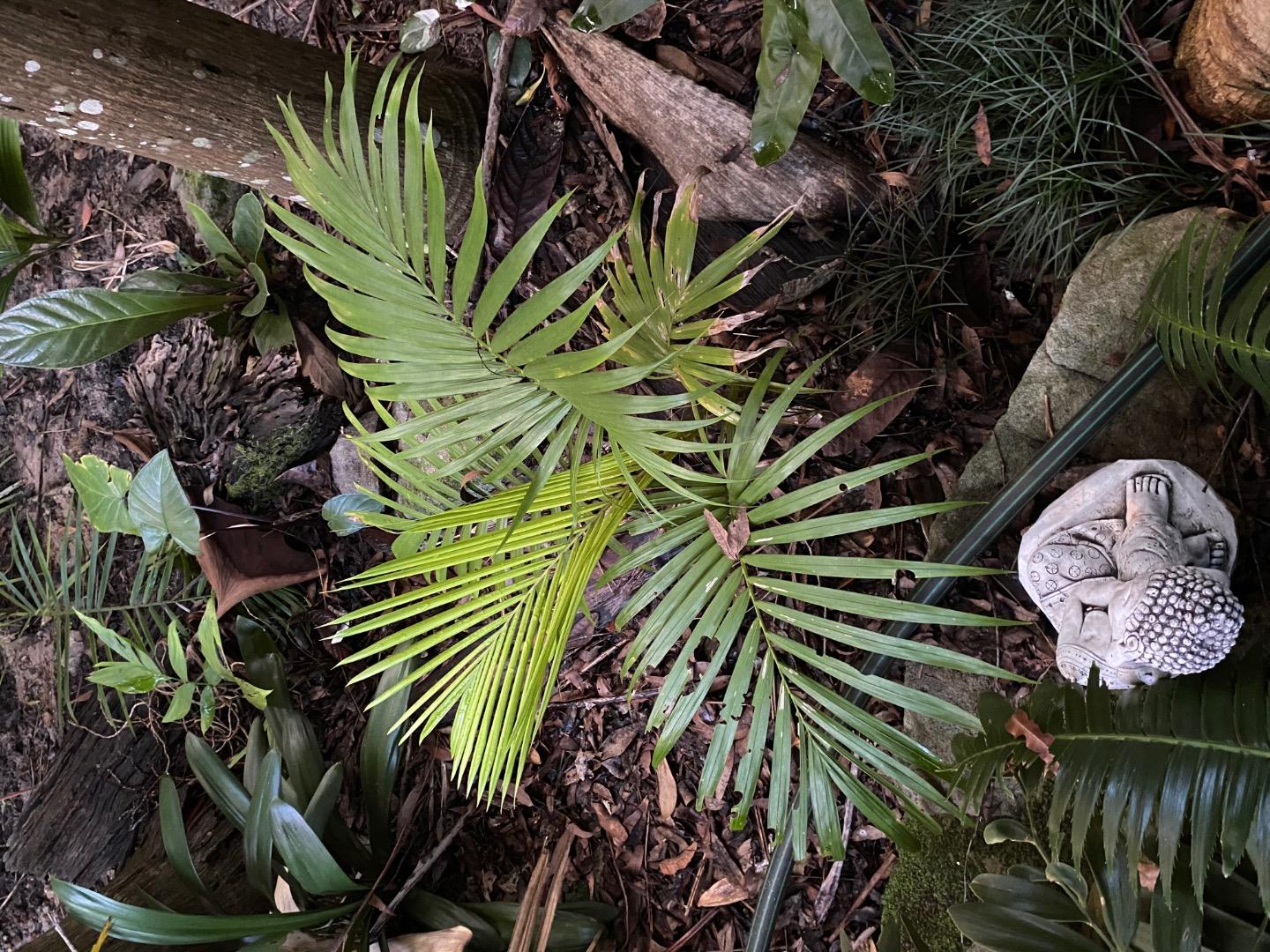 I am very, very thankful that my Tahina #1 is still alive. This photo is how it looked 12/29/2022. All those leaves browned seemingly overnight. They were cut off and the palm was treated with an anti-fungal. For a long time it sat with a single leaf slowly decaying, and I was sure it was dead. That left a small hole in my heart. But experience has taught me to be patient. I refused to cut down the palm. Perhaps 18 months later, the tip of a spear appeared emerging from the center of the palm! By June of 2024 there was a strong, fat spear undeniably gaining height, but reluctant to open. I marked the spear and occasionally measured the progress. Slow at first, then gaining speed during rainy periods. Even as recently as March 2025, the new spear was only partially open, but now at last, the new leaf has spread, gathering sunlight, feeding the palm. It is still a sad sight, but it's alive! Well worth celebrating, and I am very thankful.14 points