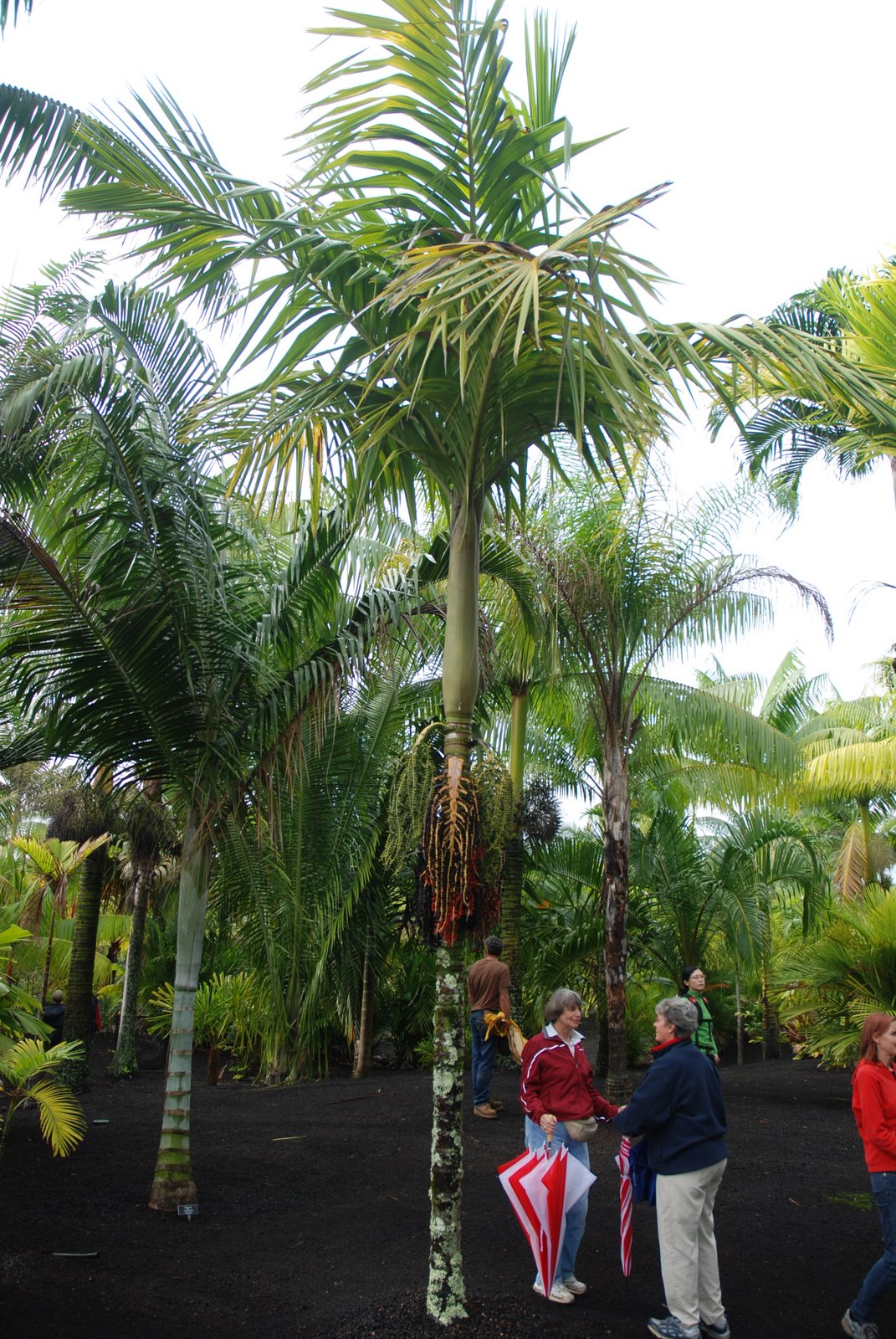 Massive and luxuriant crownshaft of Dypsis leptocheilos, closer look at that incredible Dypsis -- somebody out there knows what this is, please help! n Across the way, a Prestoea montana, very eye-catching, and a couple of bff's coming down the path. I've got a few more, but have to take a break for now.1 point