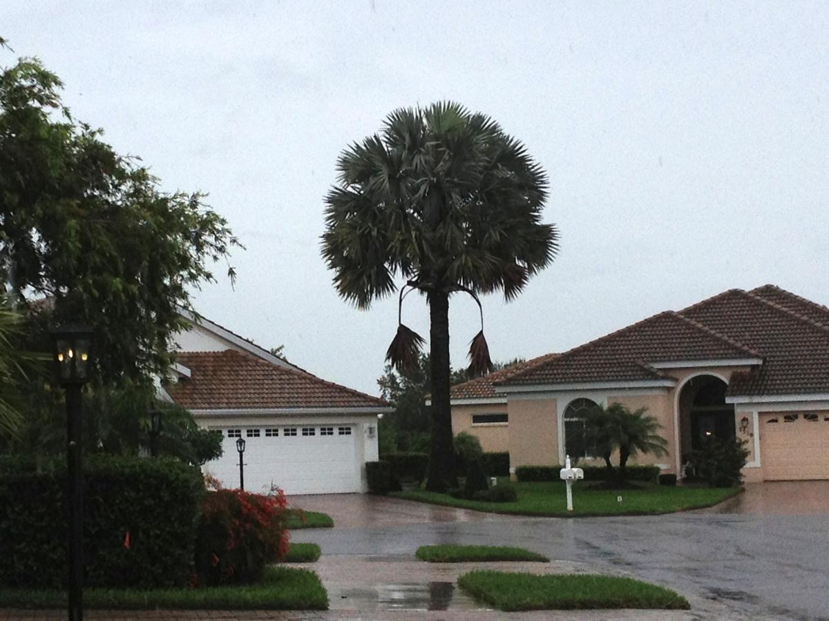 His bismarckia is just in the perfect spot, towering over a magnificent lagoon-style pool. Notice the kentia on the right, not much frost damage from last Winter, shows you how mild of a spot Len has.