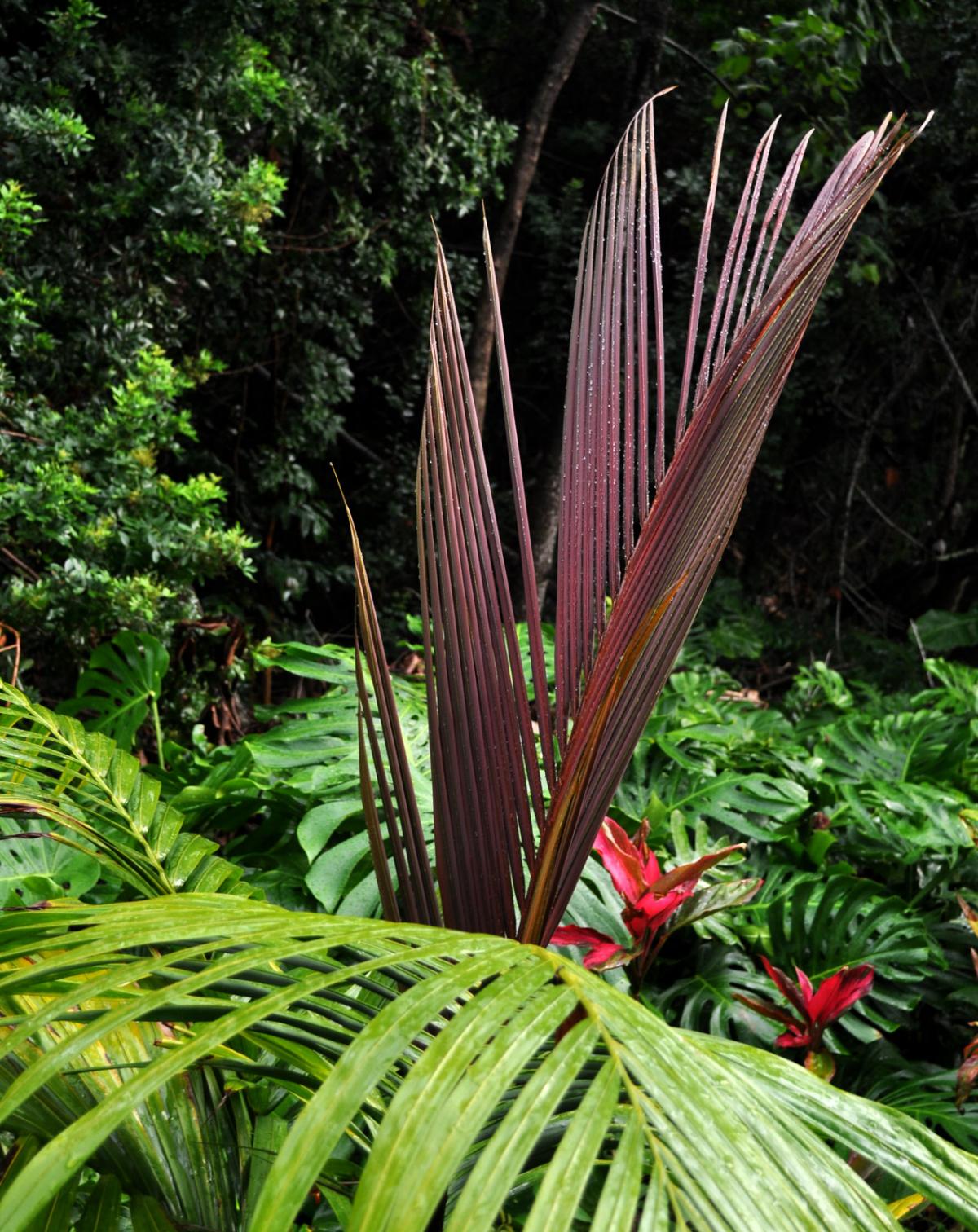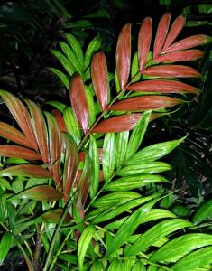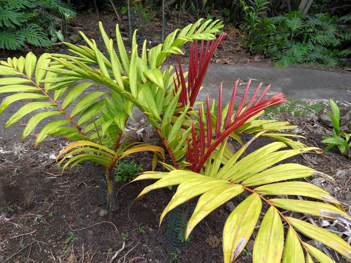 My wife Lee loves all of the new red fronds so we have a few in our garden. Unfortunately she wasn't feeling well and went to bed early so I've forgotten the species she told me on at least one of these. She is our resident expert - I dig the planting holes. Blazing red Chambeyronia macrocarpa Calyptrocalyx albertisianus Calyptrocalyx - oops can't remember what she told me. Dypsis pinnatifrons Hydriastele affinis Lemurophoenix Pinanga caesia Young chambeyronia macrocarpa when they were just in the ground.1 point