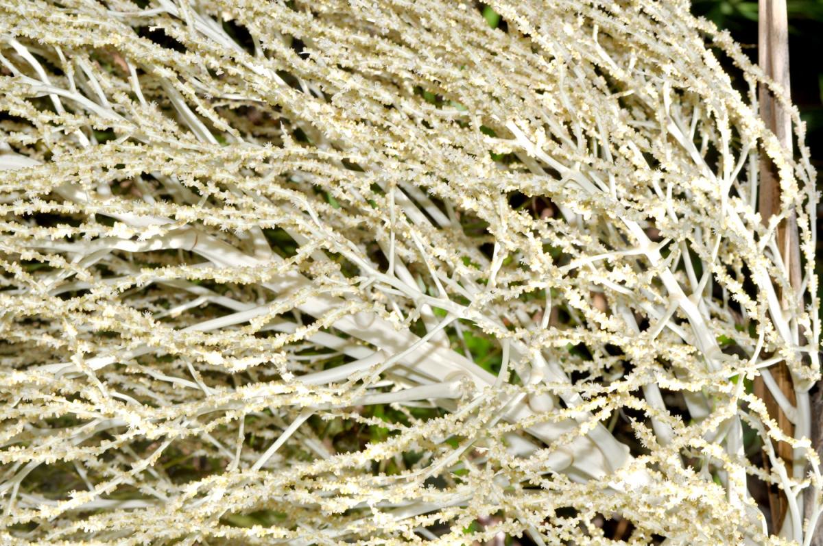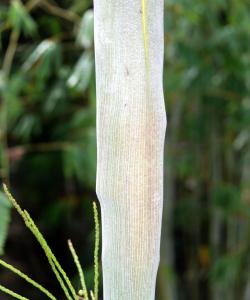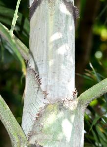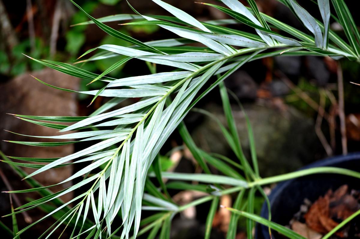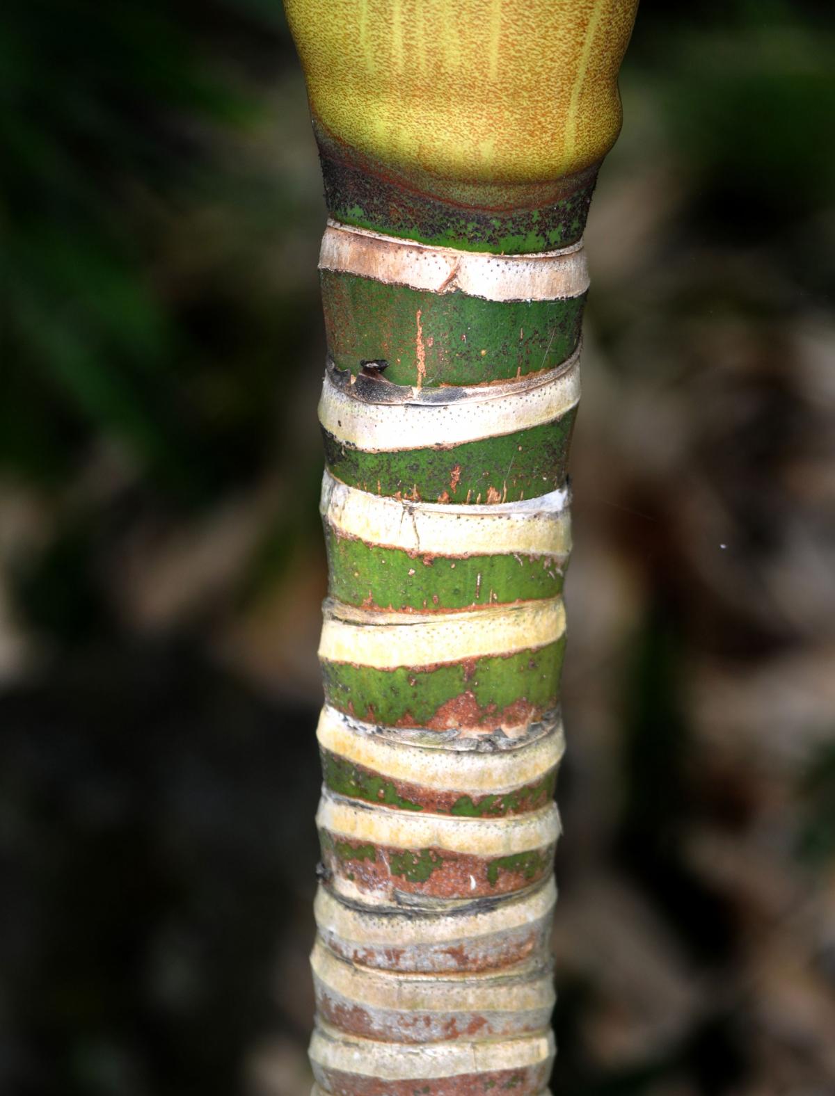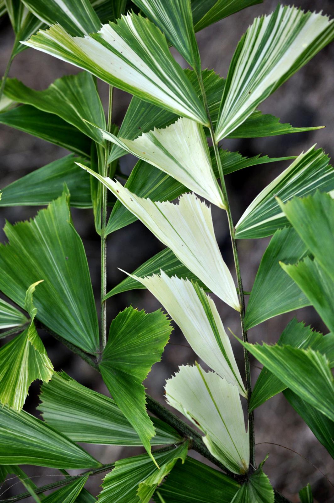 After seeing Philippe’s recent ’Fifty thousand shades of grey’ post we thought it would be interesting to have a white post but didn’t expect to find as many palms with white on them as we found in our own garden. Like the paint samples in a home improvement store they are not all the same color of white, which is consistent with the way the word ‘white’ is often used in descriptions of palms in books and journals. The various whites appear on many different parts of palms. In our garden the most frequent appearance of white is the glauca on the new spear. But we also found it on crownshafts, trunks, seeds, and on the underside of leaves. Most of the pictures were taken using fill flash, so the whites are more brilliant in the photos than they are to the naked eye. Here are some of the pictures we took yesterday. We have a few more, but will only post them if no one else posts pictures of those palms. So, let’s see your whites! Mike and Lee Areca catechu dwdarf .............................Carpentaria acuminata Bentinkia condapanna .............................Caryota mitis trunk Cayota mitis variegate ...........................Caryota zebrina1 point