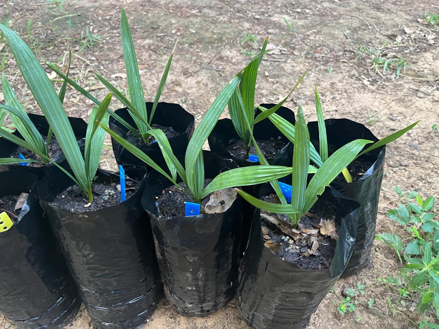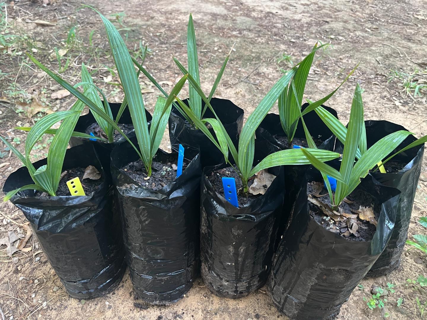 Every time I visit our chocolate farm in El Salvador, I try to take seedlings with me to plant there. I also have sourced non-palm plants locally (Couroupita guianensis, Delonix regia, a number of different Handroanthus, Ceiba, Mahogany...but the selection of palms locally is pretty slim. We are in the process of planning a new home construction (and the rest of the acreage is cultivated) so I don't have a lot of confidence with planting much yet - I don't want to end up having things ripped out or damaged when it comes time to build - but I have planted a couple of things over the last few years which seem to be doing ok with no irrigation. The dry season here can be brutal. I hope to start brining in some really exotic species once the house is built and we have irrigation in place. This is a really wonderful property and I have a lot of space to play around with. 20240703_052837.mp4 This is some of our heirloom cacao. Tested by USDA and confirmed criollo (of the 10 or so identified genotypes, criollo is the least common but occurs naturally in Central America. We found this particular variety growing wild in a nearby canyon and have cloned a whole lot with it. I like the maroon color on the new flush. First are these kerriodoxa - I planted two and both are going great! they are under a giant Ficus inspida (I believe). Then we have a duo of Chrysalidocarpus leptocheilos. Really excited about his one, as I have not seen these here anywhere. This, I believe, is Livistona saribus A bismarckia nobilis And a few Ravenala as well.2 points
