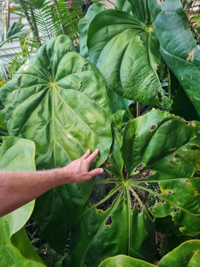 In January 2020 I received my Mule Palm from MPOM. Over the last 5 years its grown substantially and now I am faced with a decision to up-pot yet again, sale it, or plant it. Of course I chose to plant it. A new pot the next size up would be about $300, and then what? In 2 years I'll be faced with the same predicament. This mule has endured the last 3 seasons outside since it's been too large to come in the house since 2022. The lowest we've been since then is 10F and its suffered minimal to no damage (granted - I laid it on the ground and threw a bed sheet over it when it got that cold). Otherwise it's stayed outside year-round. Now, before anyone comes for me about planting it (Yes, I'm in zone 8) my logic is that considering its survival and knowing its marginal palm here - I am willing to see what happens. Who knows, maybe we won't have anymore century level events for the next 100 years. *fingers crossed* Anyway, the predicament has been WHERE to plant it; the backyard is quite full these days. So, the decision to remove my Namwah banana mat was made yesterday, and plant the mule in its place. While I love my bananas, and they do extremely well here - the Namwah was the right plant in the WRONG place and was a constant pain to keep off of the fence, and off of the patio. Not to mention I have plenty of other varieties of bananas. I made the right move. After 9 hours with only a quick dinner break today I managed to somehow remove the established mat of namwahs, and excavate a planting hole for the mule. (word to the wise - do not plant bananas without intent. Be sure that's where you want them for all eternity and have ample room around them. Oh, and use heavy lifting equipment if you need to move them.... ugh😫) Post trunk chop from winter and now the heavy lifting begins... About 2.5hours into it and I'm questioning my life choices ..... QUEUE 200 LB POTATO..... After about 6 hours I finally managed to get the giant potato from hell out of the ground and dig out a 2 foot deep 2 foot wide meteor impact crater .... *notice the red clay - if you know you know* Once removed from its prison... er, I mean pot.... I had to do some root pruning/releasing. It was extremely root bound and swirling. Once the mess of roots had been freed from themselves - the rest is the easy part. To settle in I made sure to add plenty of plant tone and water in incrementally as I back filled the hole using a mix of seaweed extract, superthrive, and root stimulator water. Hopefully that will minimize transplant shock. Fingers crossed. I do expect to lose some of the lower fronds just from how aggressive I had to be with the root mass. Finally after about 9 grueling hours, sunburnt and bleeding .... Hopefully the Mule likes this spot as much as the bananas did, and I get to see some explosive growth. As per usual it will receive nothing but regular waterings with seaweed and unsulfured molasses water to establish the root/soil microbiome this season with no fertilizers for the next 90 days. IMG_0208.HEIC2 points