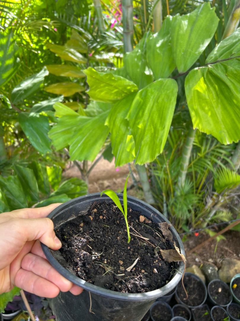 Here is a preview of what to expect. Seedlings in August 2021 about a month after planting seeds directly in 4" pots. Same plants in January 2025. They are almost through the slow phase of growth. Once they start to trunk, you can get 2 m of new trunk each year. Full sun and a tremendous amount of rain. They drop fronds like crazy if they go 3 weeks without rain. Must be one of the most spectacular palms in the world. Just keep them far away from structures and utility lines. In my hands at least, they are sensitive to root disturbance. Be careful with the root ball when potting up or going in the ground. And of course, plant a group if you want viable seed down the road. Separate male and female trees.4 points