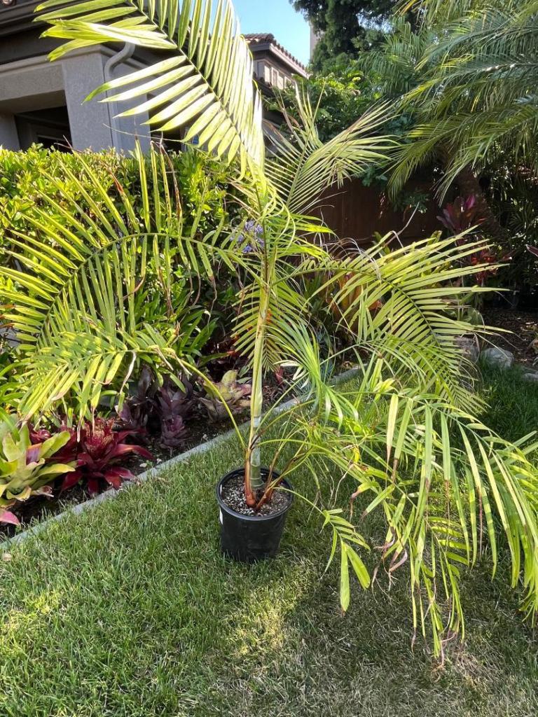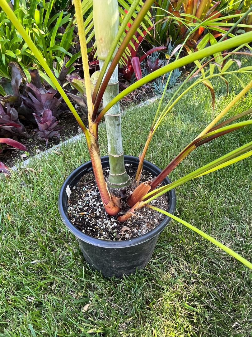 Hyophorbe Indica (Champagne Palm) $250 OBO for XL 15 Gallon (but ready for larger pot... or even better DIRT) Bought in 2021 as a 5G $150 OBO for Med 10 Gallon (but ready for 15 Gallon, or ground) Bought in 2022 as a 1G Pickup in Carlsbad, CA (North San Diego County). No shipping. Wide shot of both... Trunk close-up...5 points
