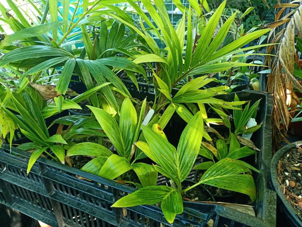 Some more of the newly collected palm species for the garden, lanonia magaloni, iguanura paddle leaf, pinanga sarawakensis, licuala terruginea, Areca loasensis, dypsis sp, licuala orbicularis, iguanura bicornis, dypsis lantzeana and a Calyptrogyne ghiesbreghtiana. They will be grown and planted next spring, all have survived winter well, so one more winter then in the ground they will go!3 points