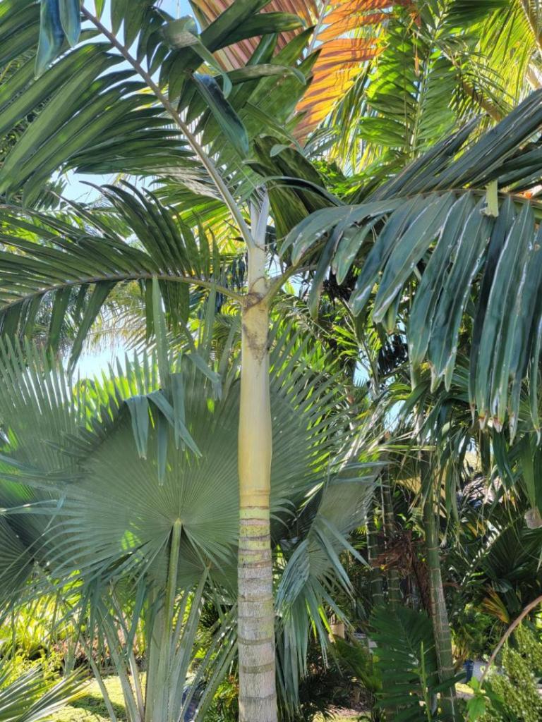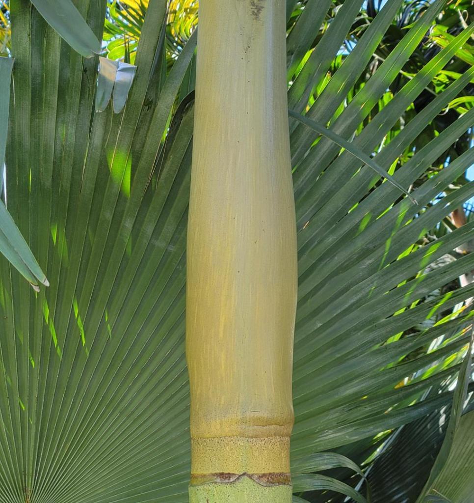 The first time I saw this palm was Dec. 31, 2021. We were staying at an AirBnb in the neighborhood that our land was in and a neighbor invited us over to see their house and garden. We were in the early stages of designing our house and I wanted to get ideas from other homes in the neighborhood. This neighbor told me he had a lot of plants so I was also curious to see the garden. I couldn’t believe it when I saw the Tahina in his yard! The planting location seems about as ideal as possible for a palm like this. There is a river / stream that runs year round through the property and the Tahina was planted fairly close to that. So it’s getting year round water in a warm climate. This neighborhood is about 11 miles north of Hilo, right on the ocean in a sunbelt area. So it gets quite a bit more sun than other areas of windward Hawaii. Here are the pictures from Dec 2021 of that first visit: As a side note: 2025 has been an abnormally dry year here with less than half of our annual rainfall. The river behind the Tahina (not visible in any of these pictures) is almost completely dried up. The current owner has lived at the home for the past 10 years and has never seen the river so low. Really hoping our rains return soon.3 points