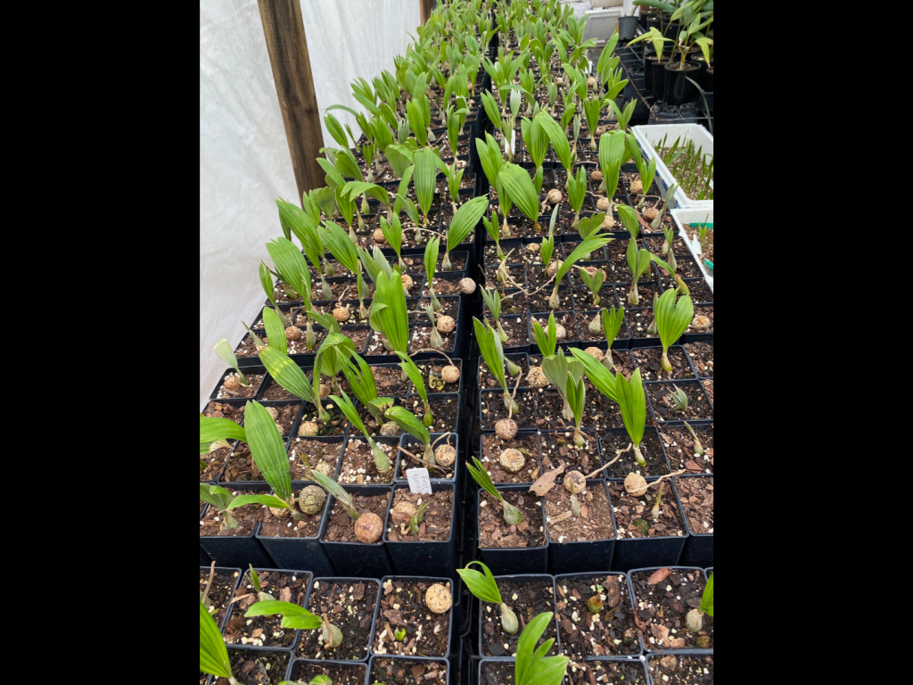 What you would be best of doing is concentrating on the known varieties of palms that are proven to survive in harsh climates sabals are good choice Livistona, trachycarpus, syagrus, cocothrinax. There are many to choose from and it’s just those varieties alone. Then theres Caryota species, all these varieties are obtainable, get these ones going in the botanical gardens you wish to be part of. Then along way you can collect the more exotic smaller varieties. Think big canopy first then the rest will follow.2 points