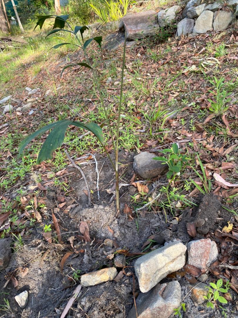 A nice cool day, well not hot more like it. So time to plant a few more palms in the garden, a nice saintlucei for a bit of tropical affect, a kentia and a foxtail for a bit canopy cover in the tough spots. And a Areca warhbo in the shade for a bit of understory bling until it gets a bit taller. It’s still a good time for planting palms just add water.2 points