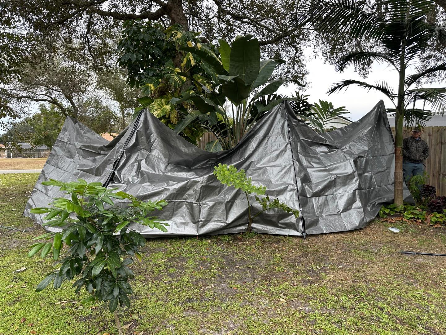 Used some tarps and 8 ft stakes at an angle to create a northerly wind block. Ran C9 lights under them. Also made some visqueen greenhouses on some smaller palms in the yard, and within the tarp windbreak. Palms that are protected: Coccothrinax Azul Coccothrinax Hiorami Pinanga Adagensis Thrinax Radiata Chamaedorea CostaRicana, Ernesti Augustii, Microspadix and Cataractarum Chambeyronia Macrocarpa Howea Forsteriana Palms that are going to die: Chrysalidocarpus Pembana, Lanceolata Chambeyronia Oliviformis Archontophoenix Myolensis, Tuckeri Sabal Mauritiformis Palms that got the crown wrapped and C9 lights and will defoliate: Archontophoenix Cunninghamiana x2 Beccariophoenix Alfredii. Forecast for SW Volusia 24 tonight, and 27 Sunday night.11 points