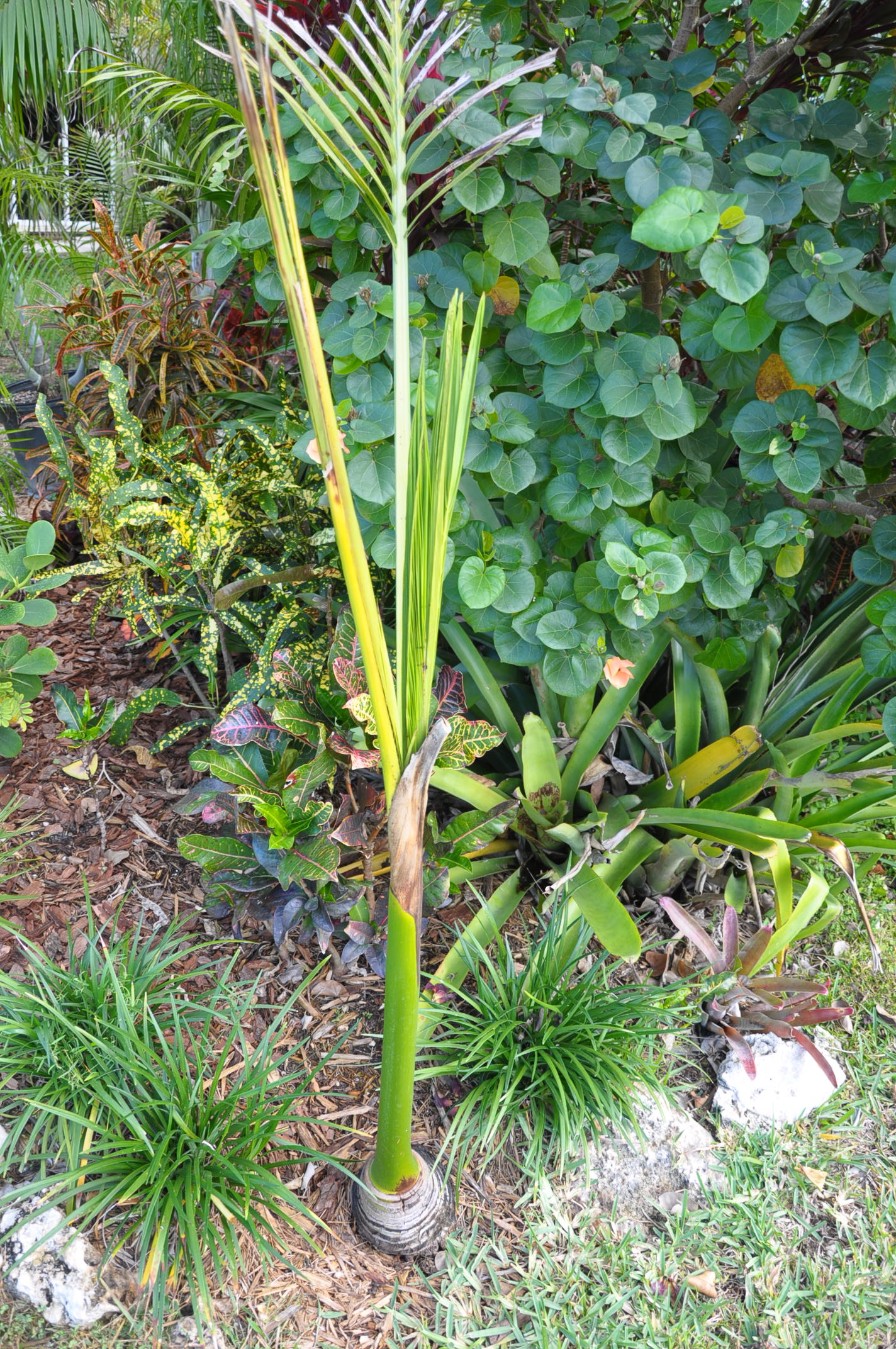 Last night I realized the boots of my seed-grown Roystonea violacea were ready to fall off. I peeled them away and discovered about 18" of pink/purple trunk. It's the real deal! It is the sole germination success of 20 seeds I bought from RPS 6-7 years ago before customs cracked down on plant material from overseas. See link below for more info on this rare, endangered palm from the eastern tip of Cuba. https://www.palmpedia.net/wiki/Roystonea_violacea It survived Hurricane Ian last year with only windburn and a 60-degree lean to the south. It has since straightened to almost vertical and replaced damaged fronds so only the boots remained to hide its trunk. In the photos below you can see scars on its crown shaft from hurricane debris. Eventually, it will grow out of that damage. It will be smaller (up to 50') and more gracile than behemoth Roystonea regia. Still a juvenile, however, but I hope I live long enough to see it flower. Roystonea violacea, Cape Coral, FL, October 20232 points