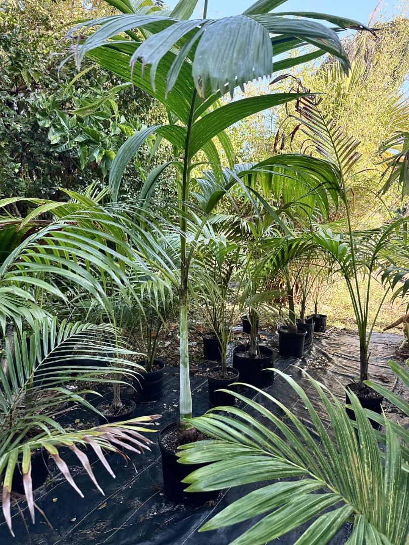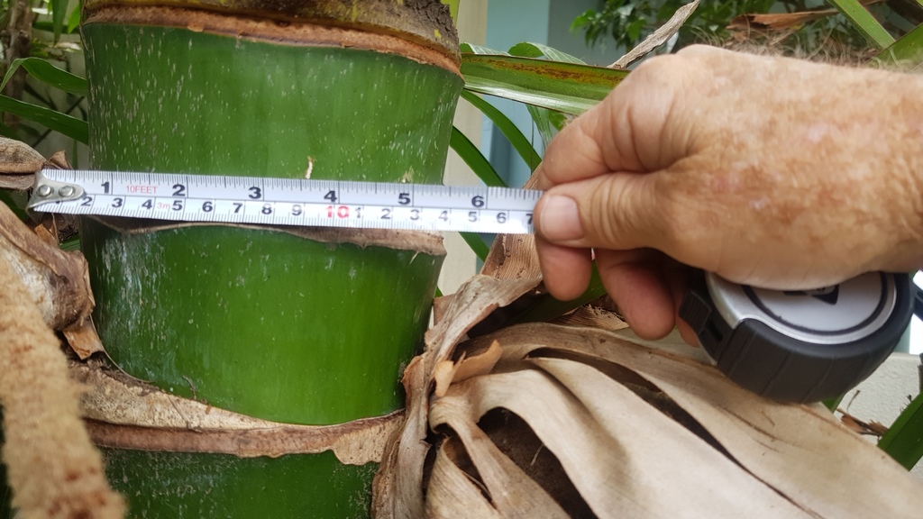 @Bkue I guess it depends on how you look at it...and what you want. They get to 20-25' tall fronds pretty fast, especially if you find one that's got a base diameter of 6-12" or so. So if you want a palm that gets a BIG crown it may take ~2 years from this size: If your target is a lot of bare trunk, then Alfredii is probably not your huckleberry. I'm not sure that anyone knows the real "average rate of trunk growth," since Alfredii is a newly discovered palm. Based on pictures at Searle and @sonoranfans, maybe 1 foot per year? That's a bonus to me. You get a large palm with an impressive crown, and it doesn't turn into a 50' tall lightning rod in 5 years. I'm currently chopping down some Queens with 20' of trunk. One died of apparent Thielaviopsis, and two more look like they are infected and dropping fronds fast. 5 years to go from a 3G pot to 20' of trunk is not a bonus, imo. I'd much rather have ones that get a full crown fast, and then get trunk at a moderate to slow rate.1 point