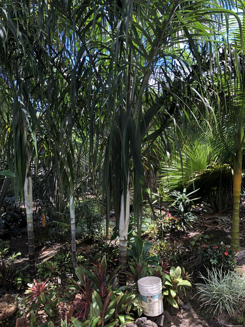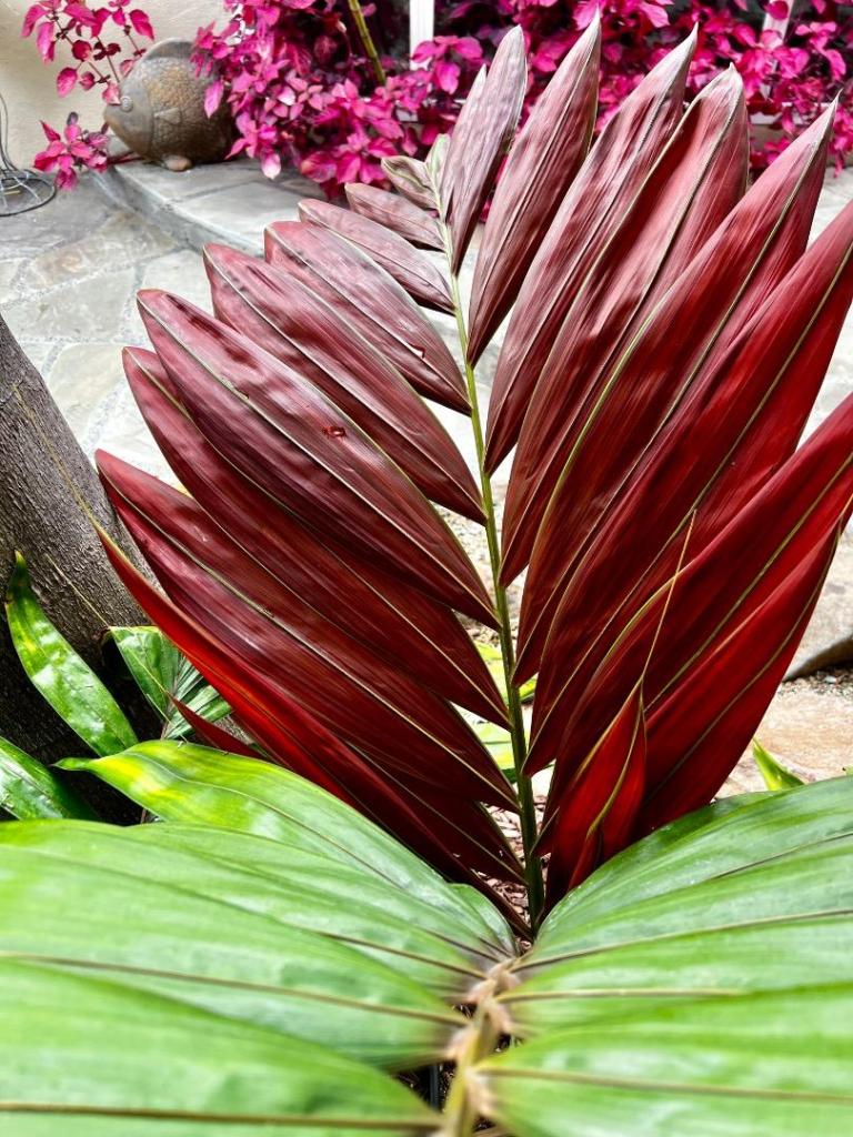 Here are some of mine. They all look remarkably decent for coming out of winter, though the winter was pretty warm. If I get the order here correct, the first one is the standard form, seed collected from Hawaii, probably seven years ago. The second one is var rubrum, which is really beginning to look pretty darn nice. It’s about head high. The last one is a small conjugatum/furfuraceum which is slower than slow, but pretty darn tough too. Never cold spots. Definitely seems to be the most attractive of an already attractive genus when it gets bigger. Beautiful palms, especially in the tropics.5 points