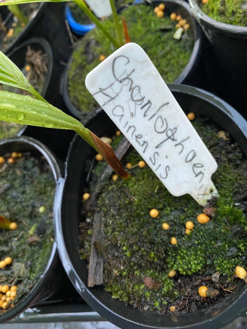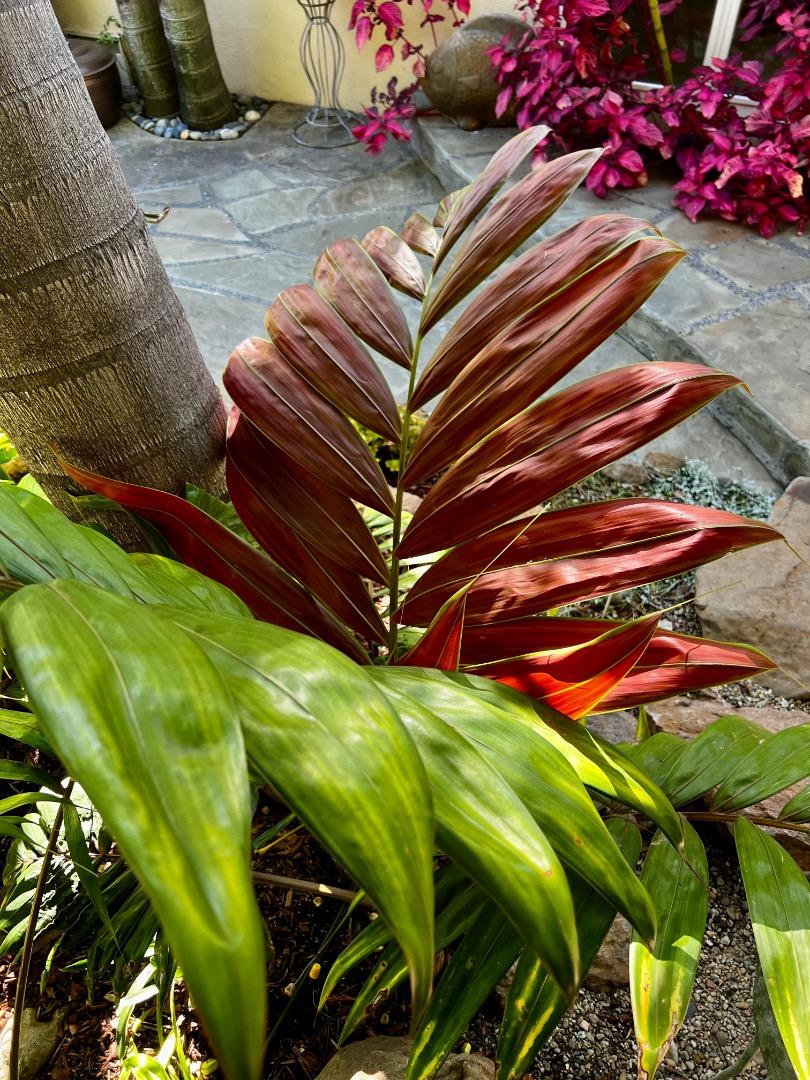 Hello everyone!!! I am very confused about what type of palm this is. I went to the nursery today looking for my first plant to set on my western-facing lanai. Originally, I did NOT want a palm because I am a Florida native who wanted more variety, but I was still open to them as long as the leaves weren’t waxy or sharp. My research led me to find the Areca palm, which turned out to be mostly what I was looking for. I asked one of the workers at the nursery where I could find one, and she told me they were all out!! I continued to look around and stumbled on the tree I ended up purchasing. It was labeled as a cat palm, but it still had the look I wanted, so I didn’t care much about the name. The guy at checkout asked if it was the Areca palm since they don’t label the plants themselves. I knew he would ask, so I showed him the picture labeling it as a cat palm. I took the palm home and downloaded the plant parent app to help me understand what is needed to care for it. The app told me that my palm was actually an Areca, and so did 3 other websites I tried to use to help clear the confusion. Long story short, I am now a proud owner of whatever the heck this is and wanted to ask the experts, not the AI. Feel free to add all the advice you can to care for her. It seems I get mixed answers around every corner. She is currently in the 3-gallon nursery pot I bought it in, which is inside of a clay decorative pot. Both pots have drains. Like I said, I have her situated on a west-facing screened/roofed porch lanai thing. The direct sunlight only lasts for maybe 2-3 hours if that before the other buildings block the direct rays. The porch is always indirectly bright and breezy. I was told not to cut the brown spots and that it’s a fungal infection from overhead water at the nursery. Anyway, thank you for your time! - Lisa Rinna the mystery palm2 points