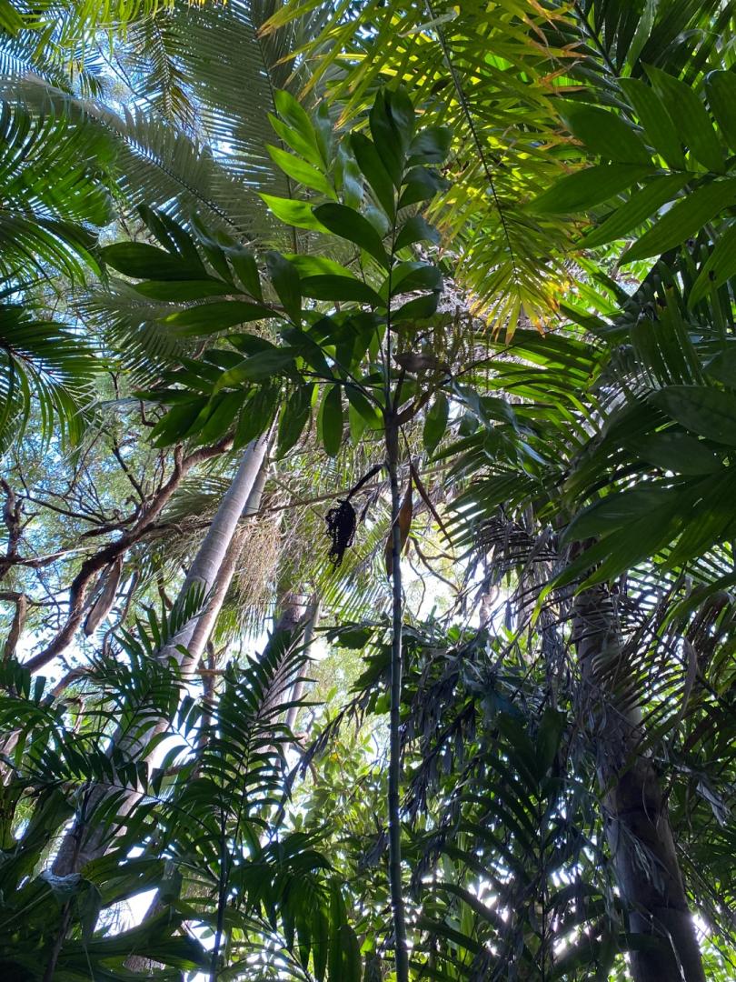 Next, the best Trachycarpus princeps I’ve ever seen. Interestingly, they won’t grow very well here near the coast. But a slam dunk in the dryer air where he lives. Followed by a canopy view with a Livistona decora poking its head out. As his canopy has expanded, what used to be impossible for him to grow, is no longer out of the question. Case in point, Becarriophoenix alfredii.3 points