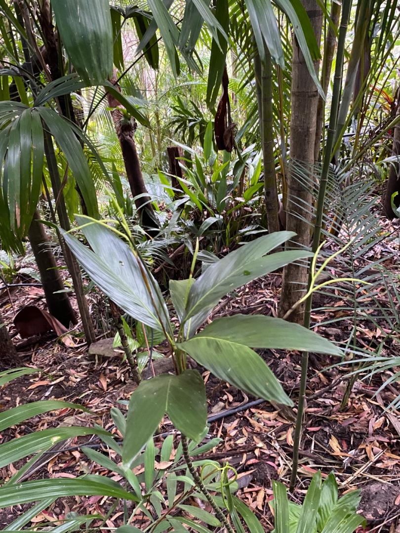 I've not shared anything with you folks before, simply because I haven't had anything to offer. I was not born with a passion for palms. We (my wife and I) fell into this peculiar and fascinating world quite by chance. Like anything, the more you learn, the more interesting things become. That said, all we have to offer you is our experience managing a legacy garden. Irene & I bought Casa de Las Palmas on Hawaii Island in 2017. The garden was the tropical fantasy world of the late San Diego nurseryman Jerry Hunter. Mr. Hunter was successful. He’d started his company in the 1950's, and was the 33rd licensed Landscape Architect in California. He'd been involved with the design of San Diego Zoo, Wild Animal Park, and Balboa Botanical Gardens, among many others. He had the first tissue culture lab in Southern California. His parents had been the go-to people on the west coast for begonias. He was essentially American plant royalty. He figured out that if he grew his tropicals in Hawaii and shipped them to California, he'd be ahead of the competition. He built a nursery in Hilo and bought the land for Casa de Las Palmas. It would serve as his home away from home, and as a showroom for his wealthy clients. Construction of the garden began in 1981 on almost seven acres of upland pasture. The volcanic clay soil was not suitable for planting juvenile plants, so untold tons of cinder and rock were brought in, and the landscape shaped and molded into what we see today. Most of the planting was done into cinder mounds. For the design of Casa de Las Palmas he worked with the local landscape architect Brian Lievens, whom he would task with sourcing some of the rare plants from east Hawaii's growers. Brian was gracious enough to provide us with the original planting plans of the garden which are now laminated and framed on the lanai. These exquisite plans (like a cross between a complex wiring diagram and an artwork) were how we learned about the palms in the garden. We spent endless evenings cross referencing the botanic names with The Encyclopedia of Cultivated Palms. Being a nurseryman from San Diego, Mr. Hunter had a crew of extremely hard working and talented Mexican men build the garden for him. A swimming hole was hand-hewn under one of the waterfalls. A delicate stone foot bridge was created over the stream. We were told that the lava rock paths took three years to complete. And the scale of plantings were nothing short of colossal. The kind only a successful nurseryman like Mr. Hunter could even contemplate. We were lucky enough to apprentice under one of the original employees, Cristobal. Without his dedication and care we would never have got off the starting line, our ignorance would have been absolute, the garden would have fallen into chaos. I recall how early on we planted a dwarf papaya on a cinder mound next to a Metroxylon amicarum and Dypsis carlsmithii (now Chrysalidocarpus carlsmithii), much to Cristobal's unspoken, but obvious, distress. Shortly afterwards a large palm leaf fell and destroyed the papaya. We took this as a sign that the garden requires a certain amount of respect. Since then, staying true to the intentions of the garden has been something we work hard on. When we plant, we consider the design. Perhaps we plant a Alocasia zebrina underneath the Caryota zebrina to mimic its petioles. Perhaps the Pinanga distitcha should be planted near the Licuala mattanensis “Mapu” to mirror their mottled leaf forms. Constant working in the garden reveals new insights every day. Sometimes it's like garden archeology, discovering a long-overgrown path or a rare plant languishing under piles of fallen leaves. Sometimes it's a lesson in design - realizing that most of the plants in an area share undulating leaf forms or that the color scheme is quite deliberately rigid. Casa de Las Palmas has evolved from a carefully orchestrated young garden into a mature ecosystem. Plants have produced progeny and plants have died. The blueprint has gotten a little more fuzzy. Many of the palms are too big to groom now. Everything fights for light, air and nutrients. It has become naturalized. Pretty soon we realized that the nutrients the garden demands couldn't be met by chemical fertilizer. It was just too expensive. So, we looked into goats. We now have six gelded males rescued from the butcher's block and fenced on a neighboring paddock we own. They provide plenty of manure for the garden. Their poop doesn't smell much, is hard and breaks down slowly and can be flung from a shovel in showers through the dense plantings. The plants love it, but we do supplement weak or needy palms with a special palm fertilizer as needed. Legacy gardens are by their nature equal parts demanding and rewarding. They offer those of us new to gardening an incredible learning experience. We certainly don't have the kind of money, manpower or knowledge required to create something so remarkable from scratch. But like buying a beautiful, world-weary house, after a lot of work, you can enjoy something unique, grand and magical. Really for us it is the magical spell that Casa de las Palmas puts you under, one that removes us from the world and enchants us, that makes this legacy garden so very special. Lastly, I'll leave you with three things of note that we have learned: Map your garden. Don't make it too big. And don't go planting Clinostigma samoense down the driveway...or any heavy crownshaft palms for that matter! com.google.android.apps.docs.editors.kix.editors.clipboard?uuid=ecbeebc8-9124-4c8d-9ebd-e5cbdce7e26b2 points