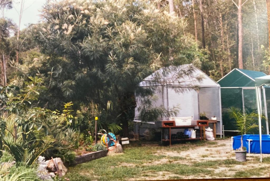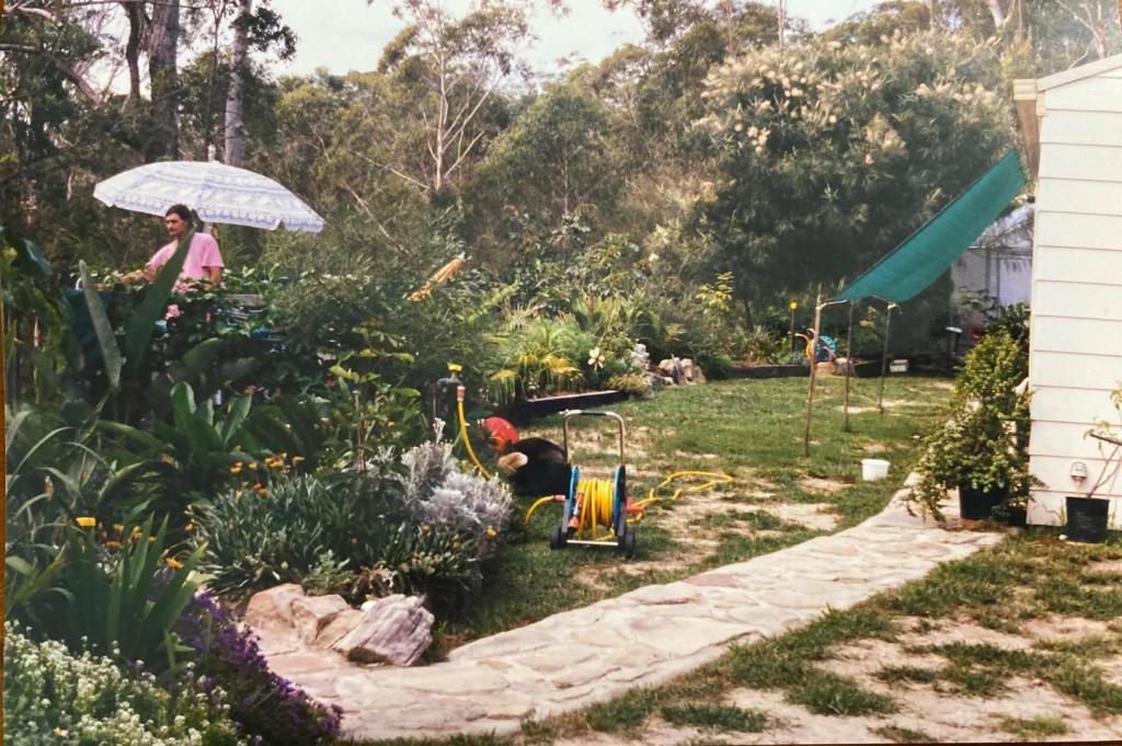 I found some old pictures of the house and garden right from the very beginning at least 30 years back. It took me a few years of building and landscaping before I moved in. I cannot believe all the rocks and the sandy soil it’s amazing when I look back at the tropical garden I have created. Even my garden style was different with low perennial flowers and shrubs due to the heat in summer it was so unbelievably hot. Candles would melt inside the house when we went out and locked the house up. Now 30 years later the garden is 26 years old. One divorce later and a young man back then age about 26, now 56 years young again and still dreaming about the vision of the garden I created. So you can create a tropical garden in a barren hot bush block of land, just add love of palms and a dream to it!3 points