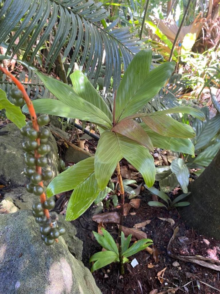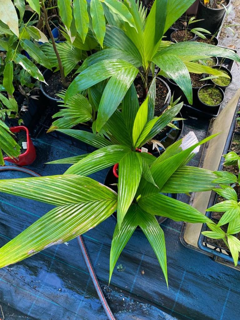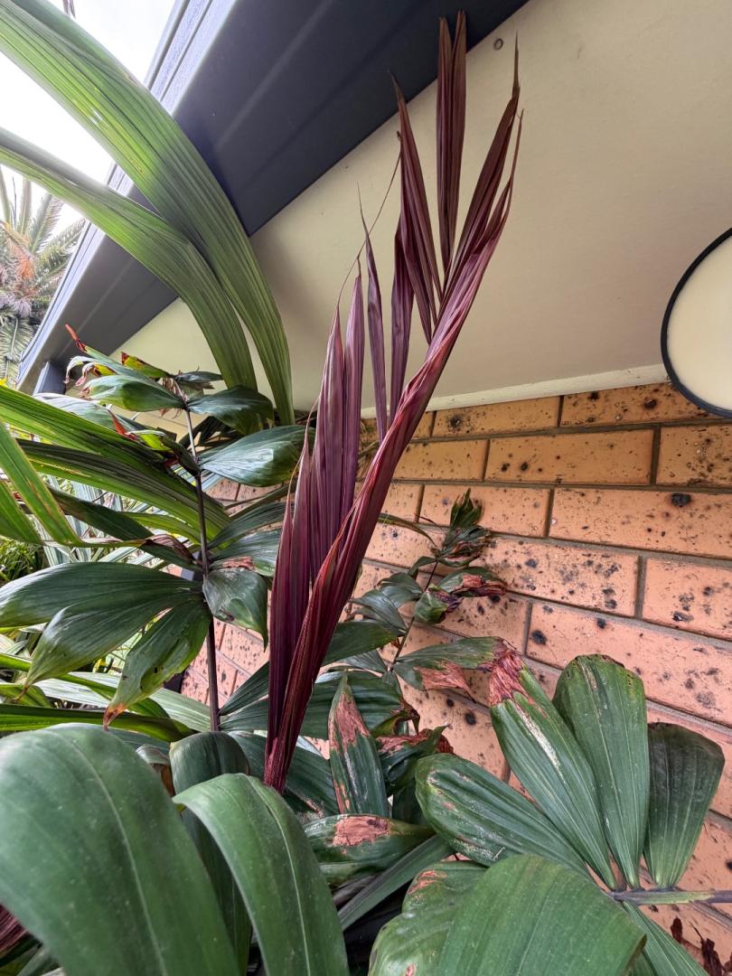 Bill Austin sent me seeds of 1 of his many Pinanga's around 7 yrs ago and Bill's had a lot of dark orange in the C/shaft. Here, it's getting redder ea year. I have given it a high K slow release fert to induce flowering, which also add's color to most plants. Thanks Bill, trust your very healthy and happy mate. Pete1 point