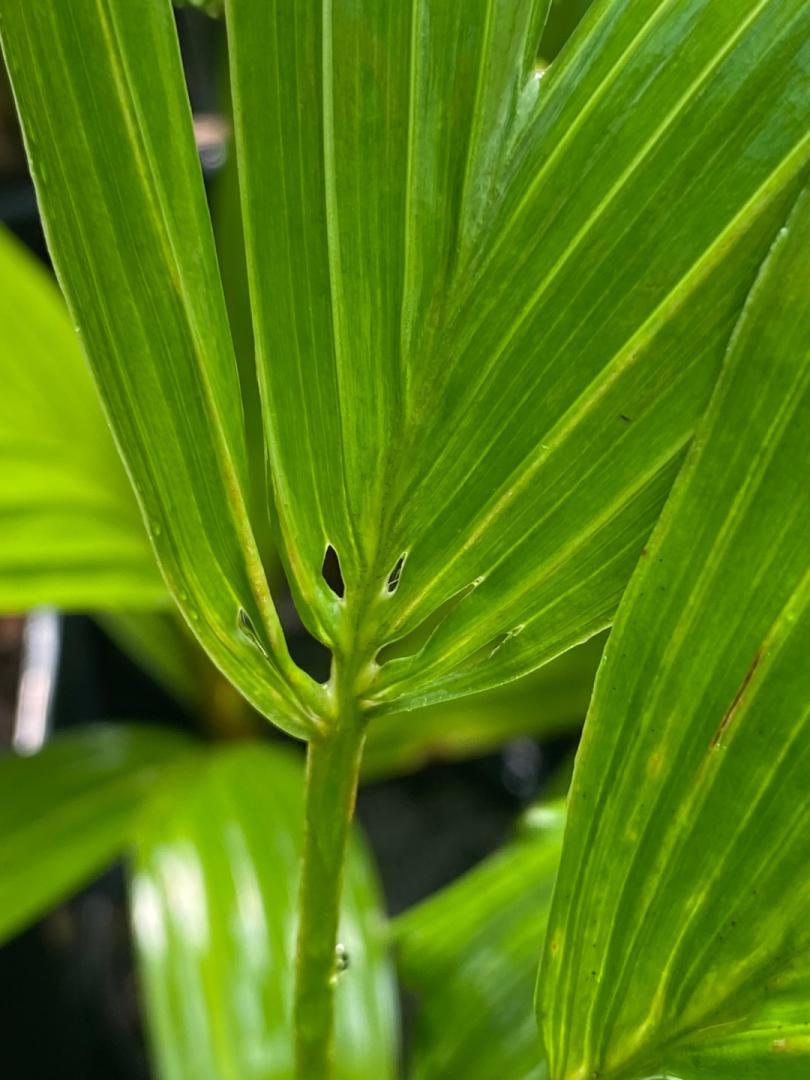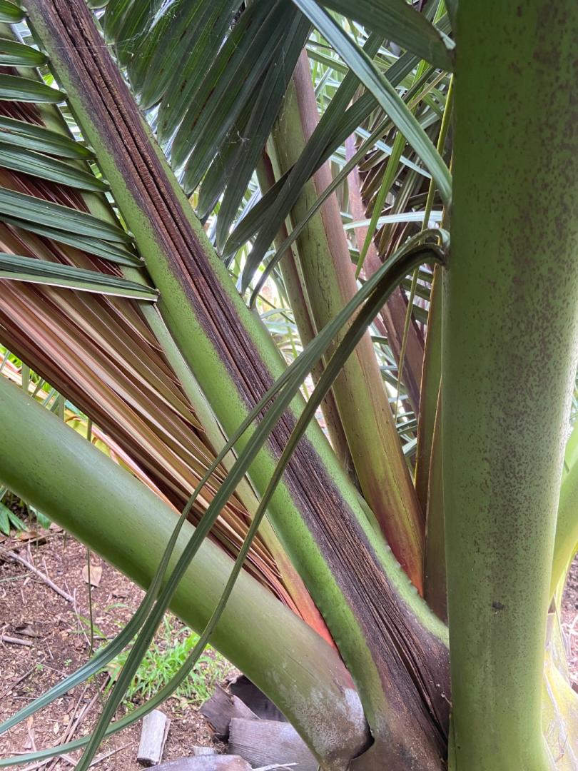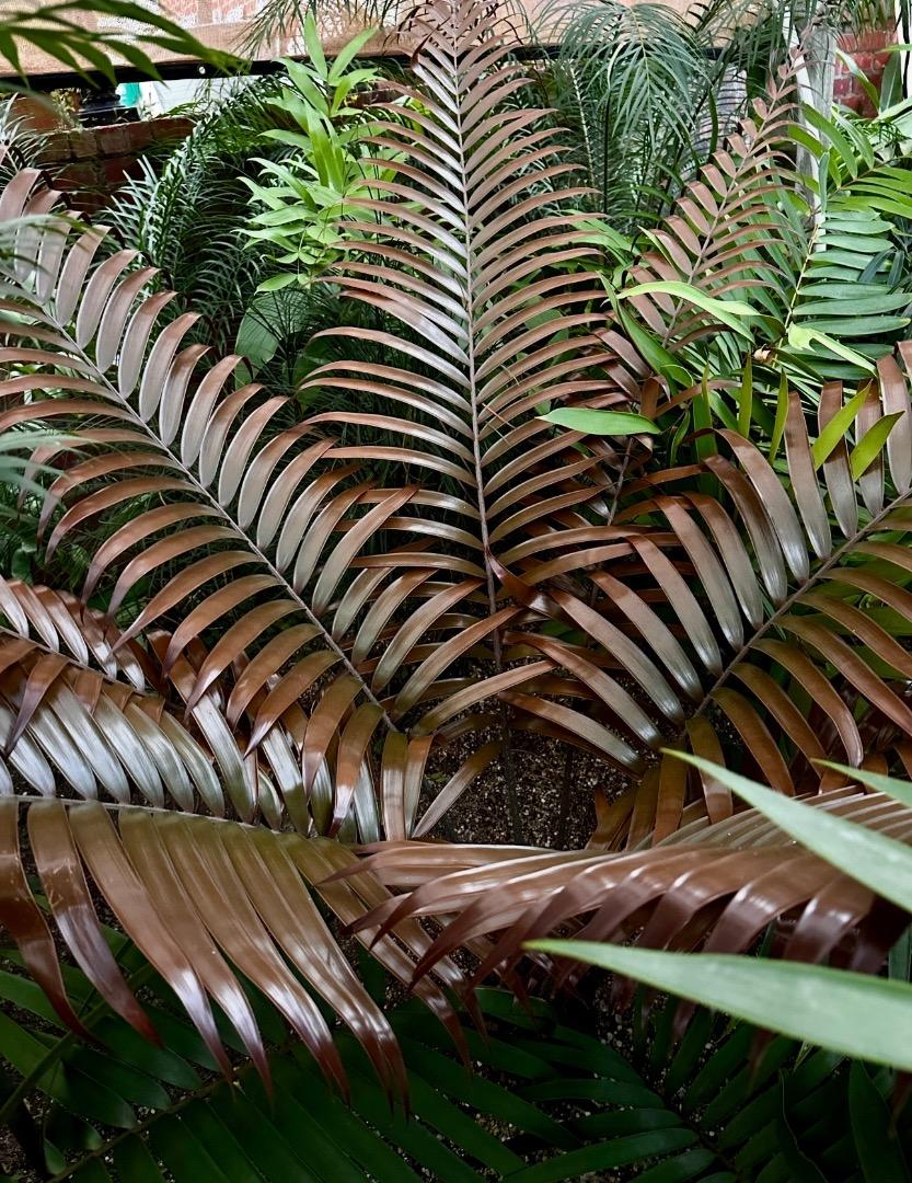 I have visited Fairchild Tropical Garden in Miami FL many times but always enjoy seeing new additions and checking on “old friends”. This Sabinaria caught my attention especially since it looks untouched planted outside despite the recent cold spell here. I eagerly await mine growing big enough to show off the gorgeous leaf shape and color! Below are two different Kerriodoxa elegans. Rhino beetles in Puerto Rico love these so not sure if I will get any to trunking size. I am really looking forward to seeing them in habitat in Phuket Island.Thailand on the soon to start IPS post tour. Calyptrocalyx albertisianus is a fairly new addition to my own farm after I saw a beauty at Dean Ouer’s place in HI a few years ago. Here is one at FTG reminding me that they are likely to be much taller than my other more shrub size Calyptrocalyx. I am including a striking cycad that I wish I grew. Microcycas calocoma.6 points