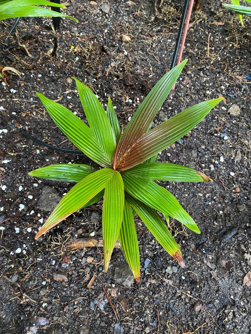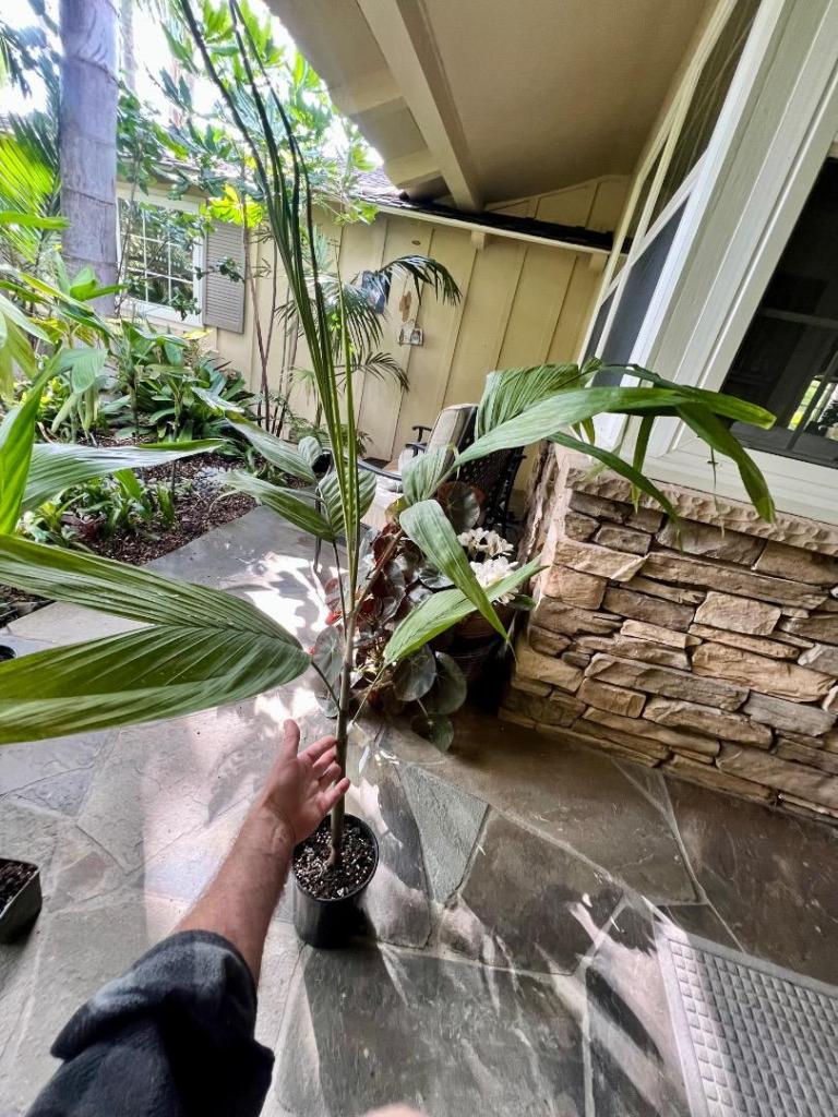 Dave, I’ve always been a “plant them even when they’re tiny” kind of guy. Many of my big honking palms were planted as 2 or 3 inch seedlings directly to the ground. Here are just a few of them… @Jim in Los Altos. I have done that as well and been ok. I was just curious how others have done it . Some of them stay in pots for a while just because I am deciding on final spot or don’t have time to dig the hole. Harry ‘These two came home from Maui with me in 4” pots . Pritchardia H. above and Chambeyronia M. below . Planted within a week of coming home .2 points