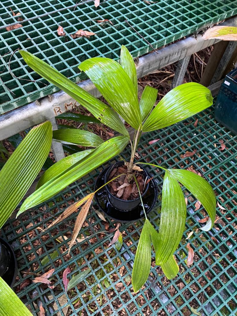 Thanks Tim & Richnorm. Pinnae arrangement look similar to both scottiana and particularly to sahanofensis, but the inflorescence on the palm in question is unbranched. Reading about sahanofensis, the inflorescence is branched to two orders. Definitely getting closer. Tim1 point