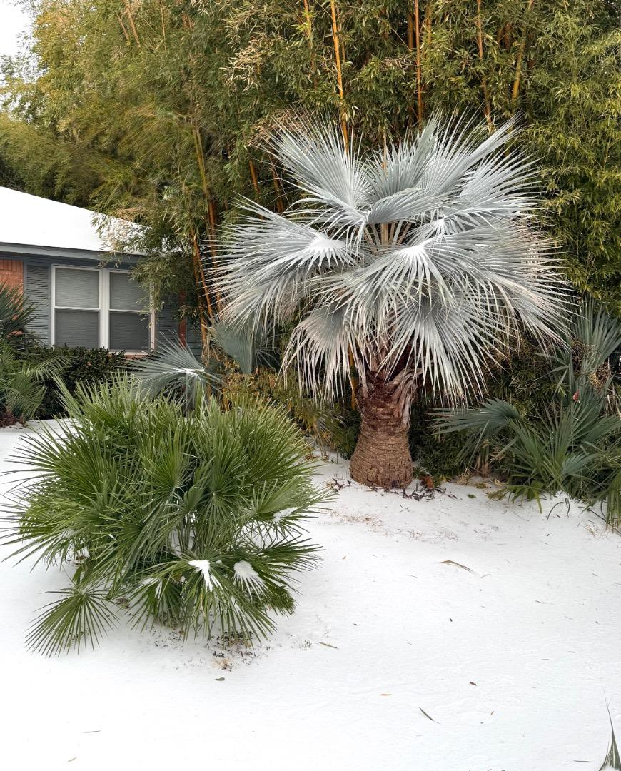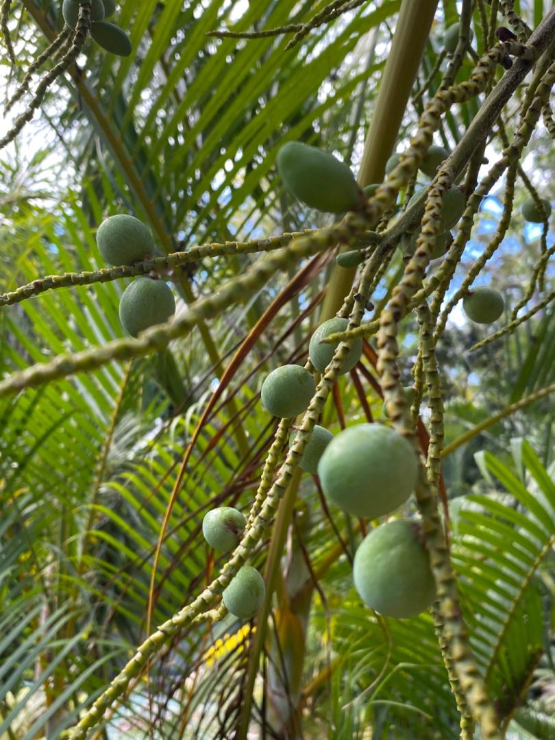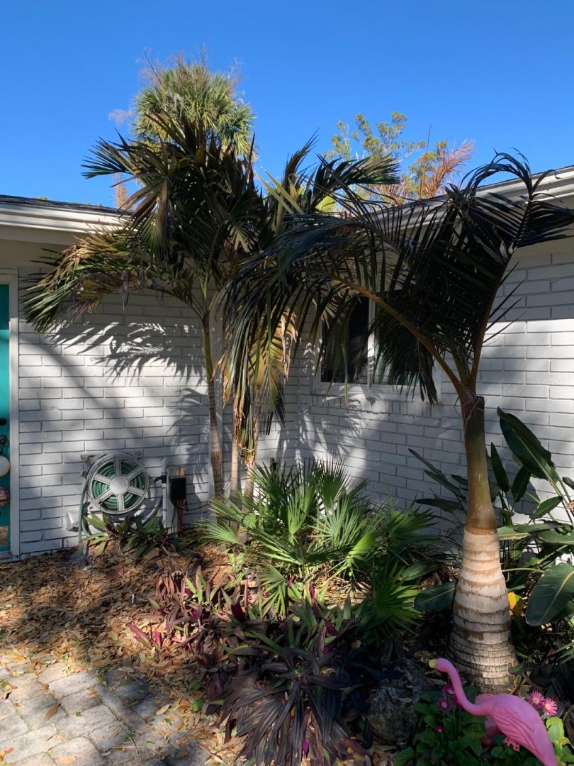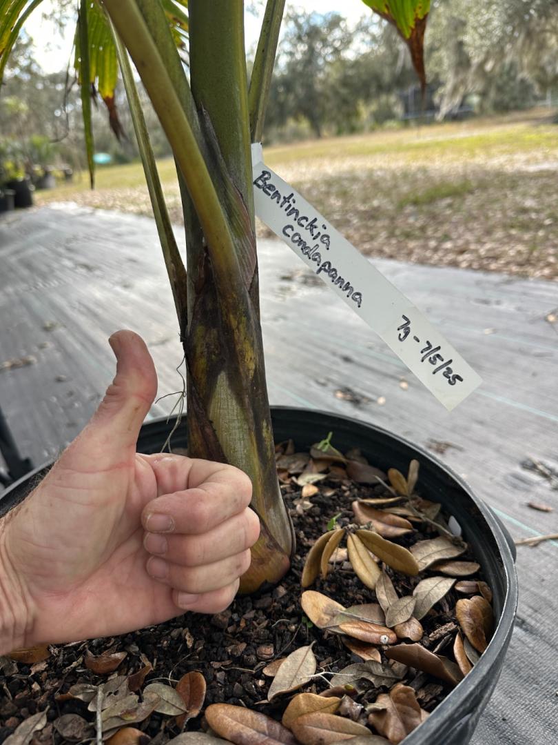 Mine came from the same FB batch as Kim's. It went into the ground in March 2019 from a 1 gallon pot. After seven years, it is now about 15 ft (4 m) tall overall with about 4 ft of bare trunk. The color of the trunk is a dull red-orange. Totally carefree. I had never noticed any spines on the crownshaft, but when I looked closely today, I do see very widely separated short spines about a half inch (1 cm) long. Much more conspicuous are the white hairs on the leaflets. I have not noticed these on any other palm species growing in the garden. Could this be a reliable diagnostic character in addition to the coloration? Mine has developed a swollen base.3 points