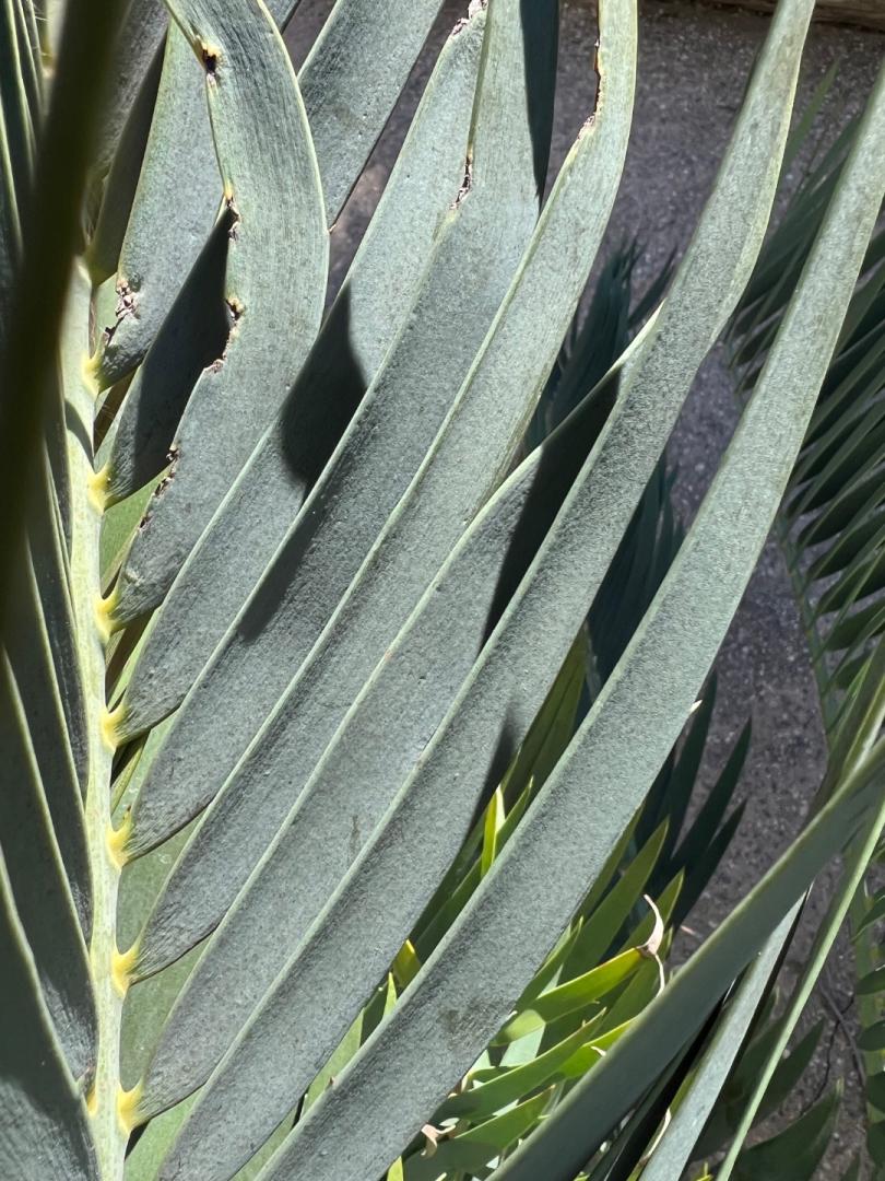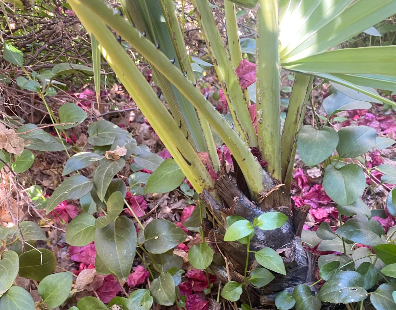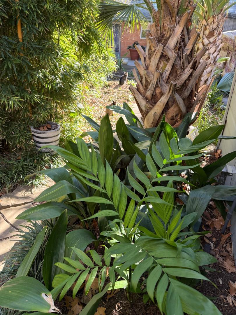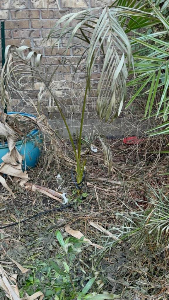 This area is wind sheltered from the north and northwest by my 2 story house. I think the wind sheltering just let more frost from and caused more damage. The zone 10 palms on the north side of my house look better as you will see later in this thread. I noticed that same pattern all around my neighborhood. I guess it just goes to show things don’t always go the way that we think it will. closeups of the previous two.2 points