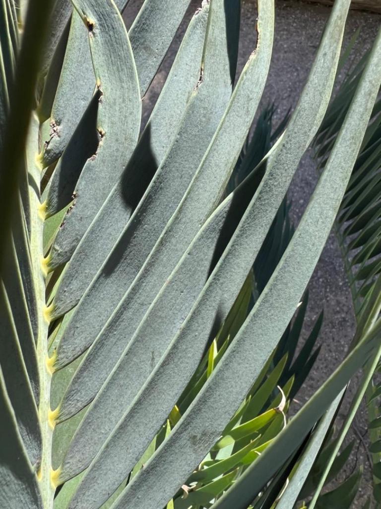 A bit small but i call it a victory, my freeze damaged spindle i thought was a goner has survived the trunk cut and started a new spear! the white petiole seen above it is about 4 inches tall with no leaves, and was at the cut a week or so ago. hopefully it survives summer and a few fronds so it gets strength before winter🤞1 point