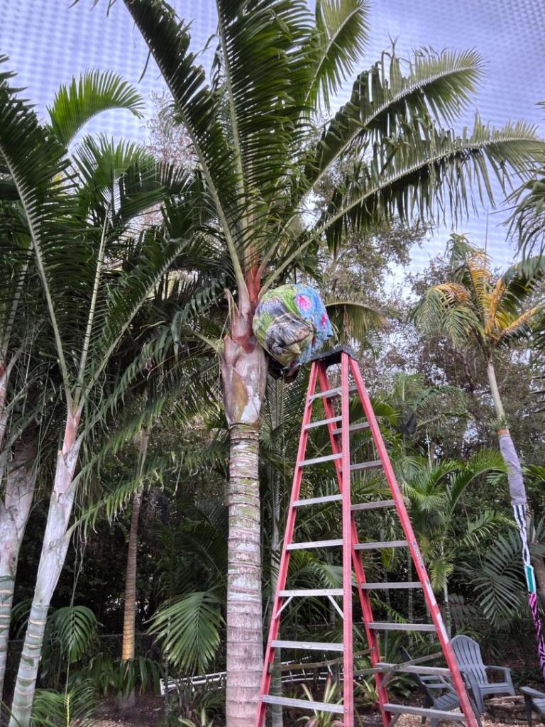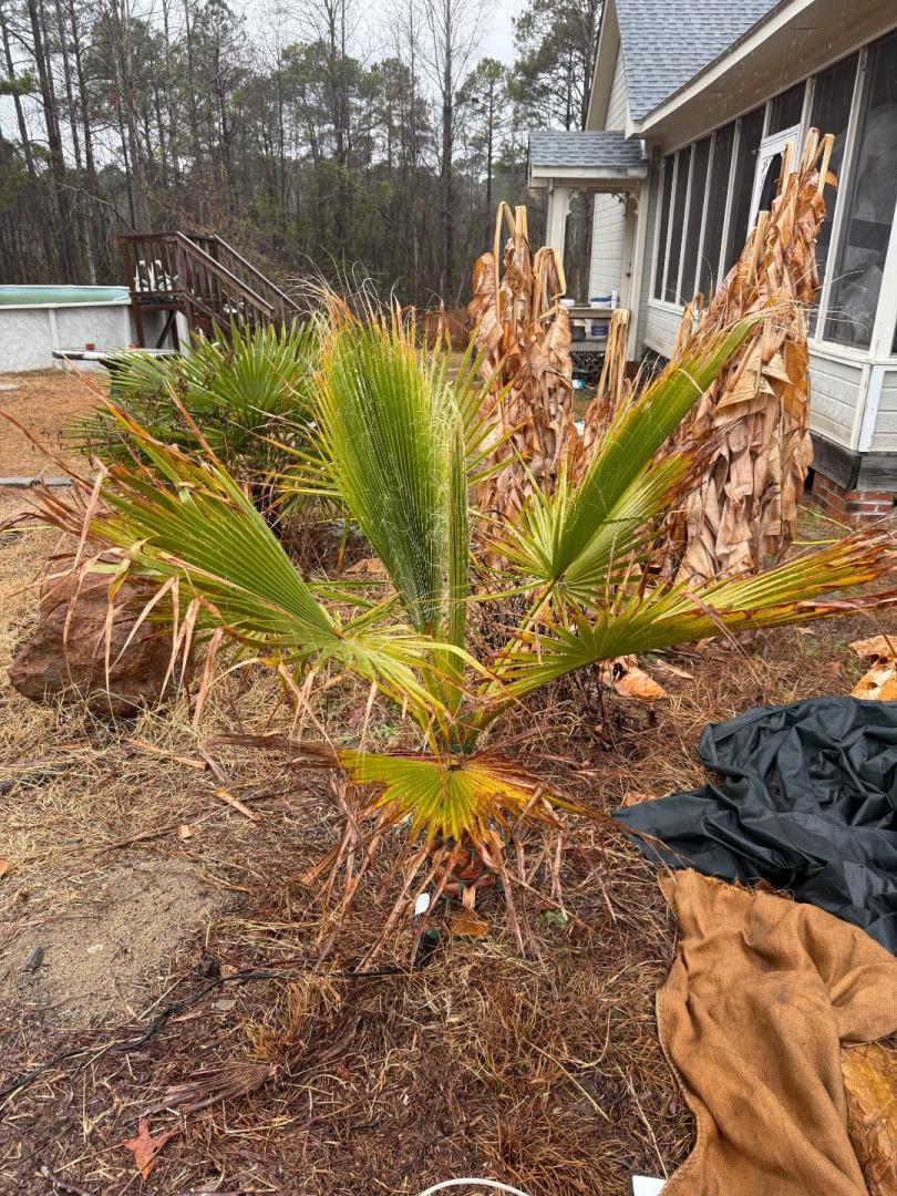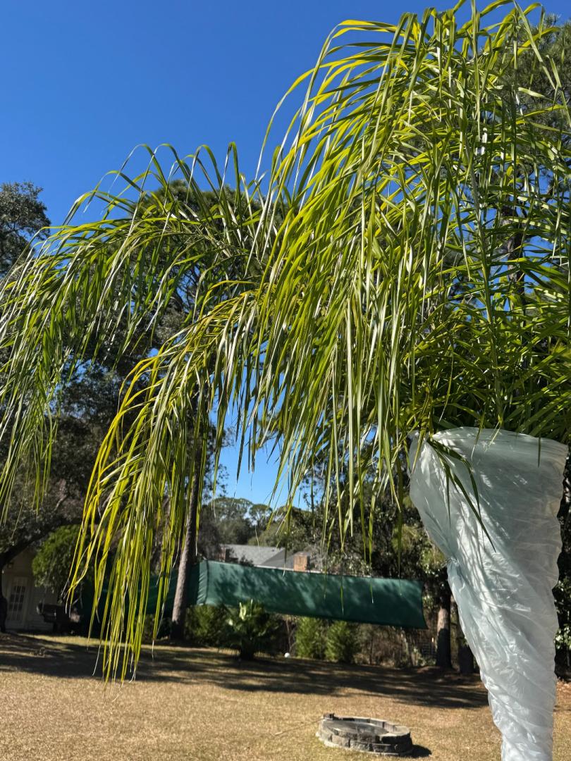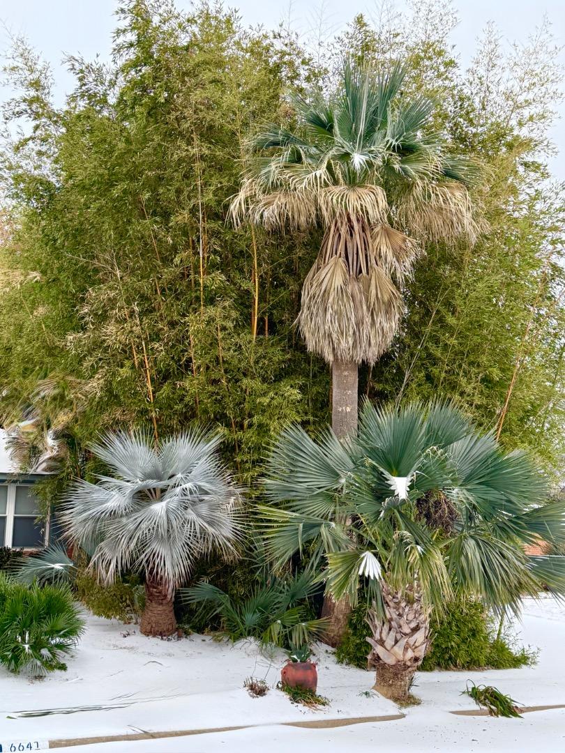 The damage on some palms and cycads seems wildly inconsistent. It's really strange: Dioon Merolae has 8 or 9 totally torched fronds, and one untouched solid green one! Zamia Vasquezii on the N side of an Alfredii is 100% burnt to a crisp, and an identical one 6 feet away looks nearly perfect. More normal is the behavior of some Encephalartos Ferox in the open (exposed to wind) 100% torched, others with some windbreak are lightly damaged. I did pull one spear from a small B. Alfredii today. It is about 3 feet tall, so it is still super skinny near the bud. I haven't tried pulling on many spears yet. I am sure of 100% mortality on all Burretiokentia and Cyphophoenix species, along with several Dypsis/Chysalidocarpus Lanceolata and Pembana. The Lutescens will probably regrow from the roots. A bunch of others probably have bud death and I just won't know for a couple of months. Some stuff I am just going to "edit" out now instead of trying to fix them.4 points